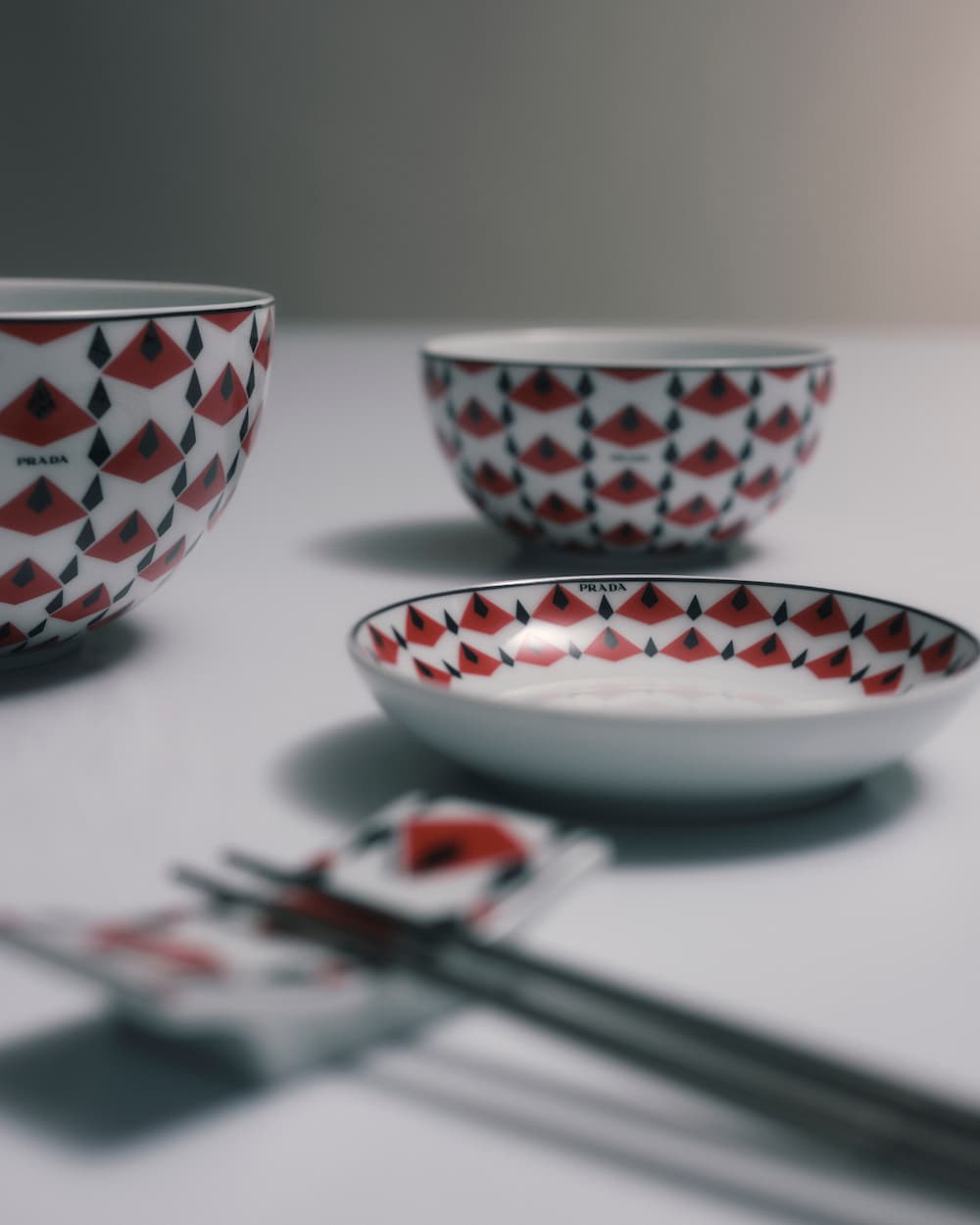 上質なポーセリンのソースボウルのセット。1903年に有名なウィーンの建築家ヨーゼフ・ホフマンがデザインしたグラフィックモチーフにインスピレーションを得た、モダンな幾何学模様があしらわれています。洗練されたラインのデザインは、テーブルセッティングに最適。上品でモダンな雰囲気でテーブルを彩ります。