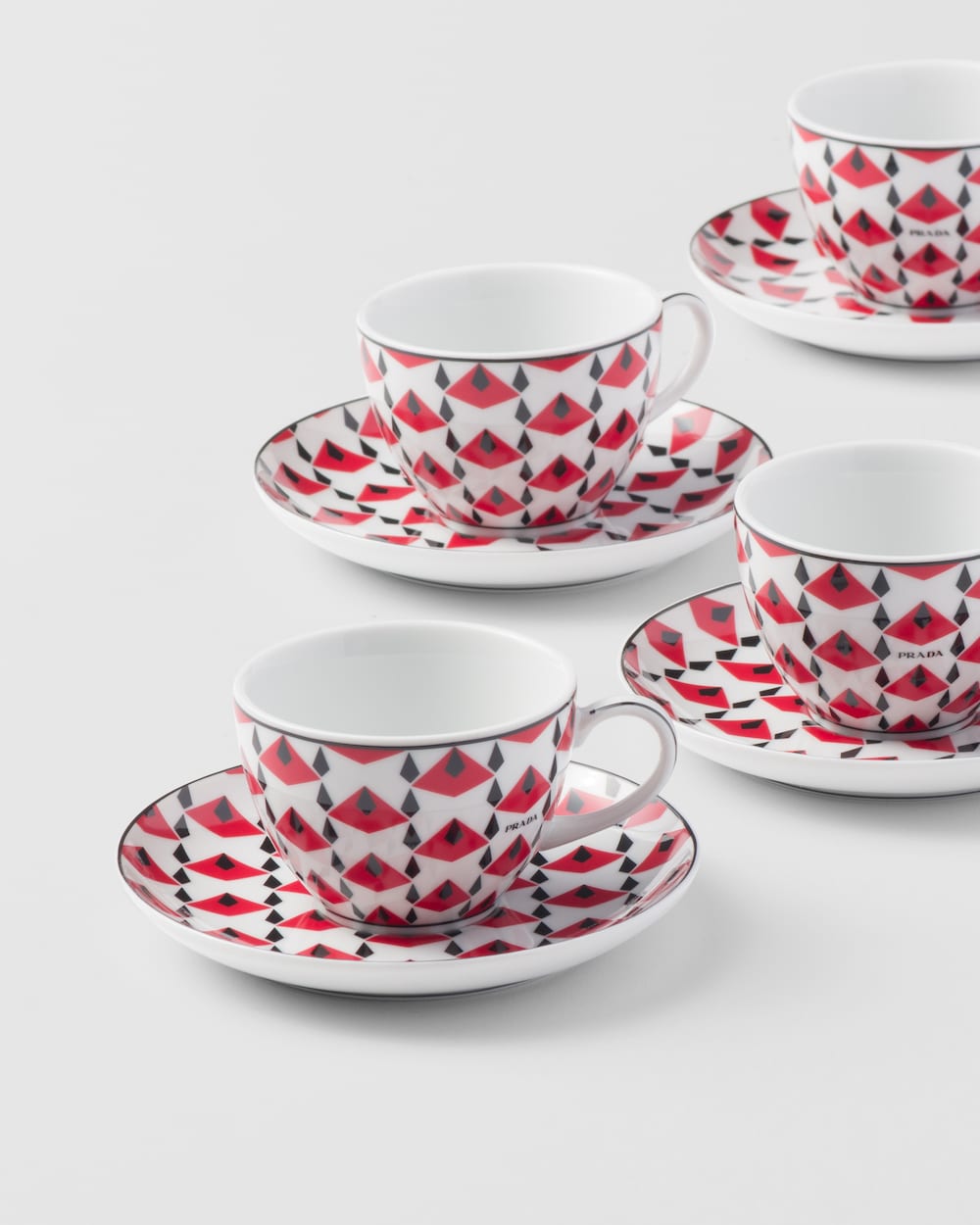揃いのソーサー付の洗練されたデザインのエスプレッソカップ。1903年に有名なウィーンの建築家ヨーゼフ・ホフマンがデザインしたグラフィックモチーフにインスピレーションを得た、モダンな幾何学模様があしらわれています。毎日のさまざまなシーンで活躍する、上質なポーセリンのセット。エレガントな朝食を演出したり、モダンなテーブルに洗練されたエレガンスのタッチを添えます。