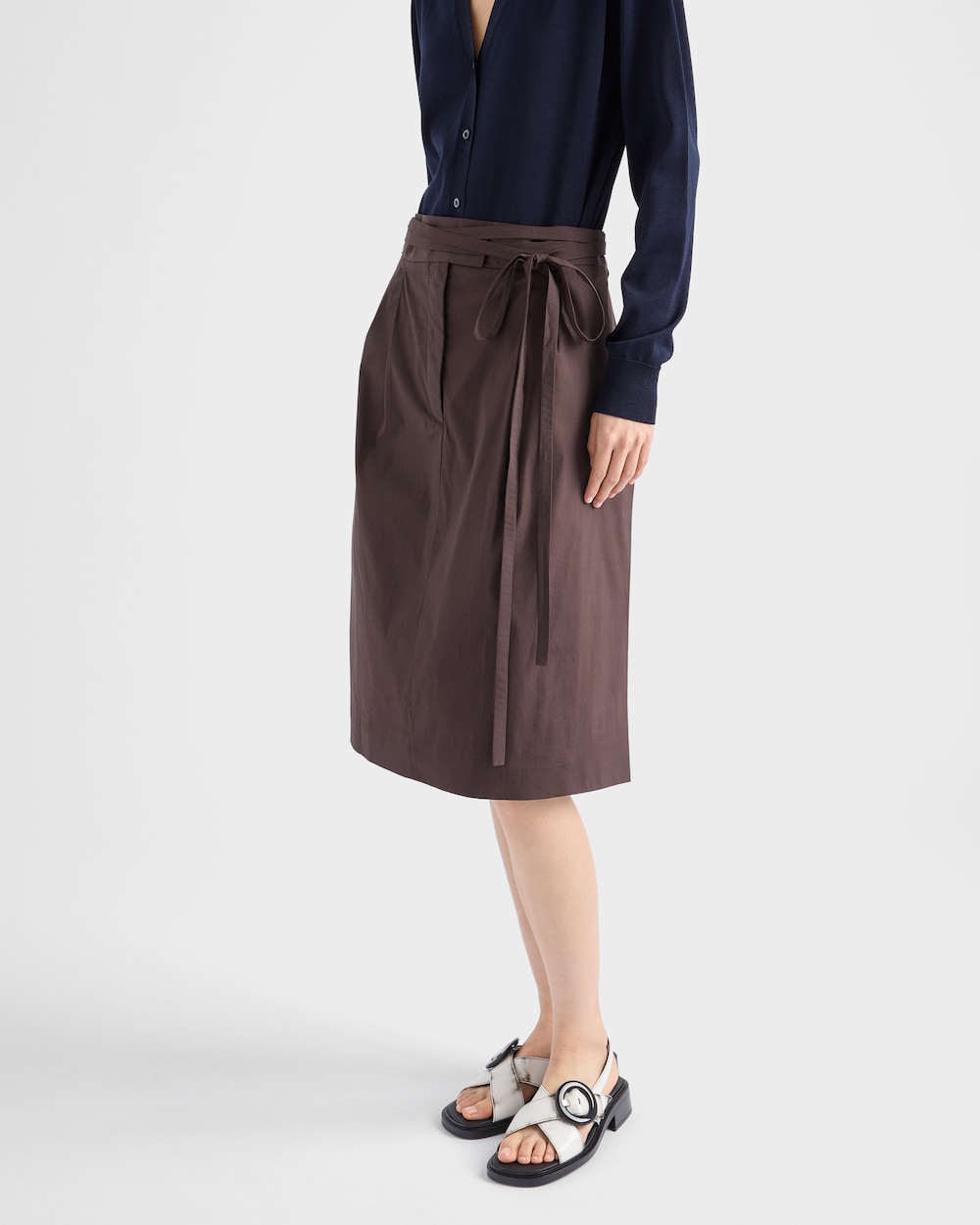 ラップシルエットが特徴のスカート。ポプリンを使用し、軽やかでカジュアルな雰囲気に仕上げています。シンプルでありながら個性的なディテールをあしらい、現代的な魅力をプラスしました。