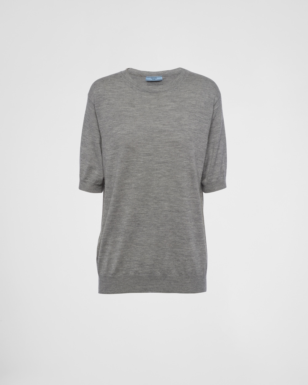 - ニットのトライアングルロゴとプラダのサルトリアルラベル付