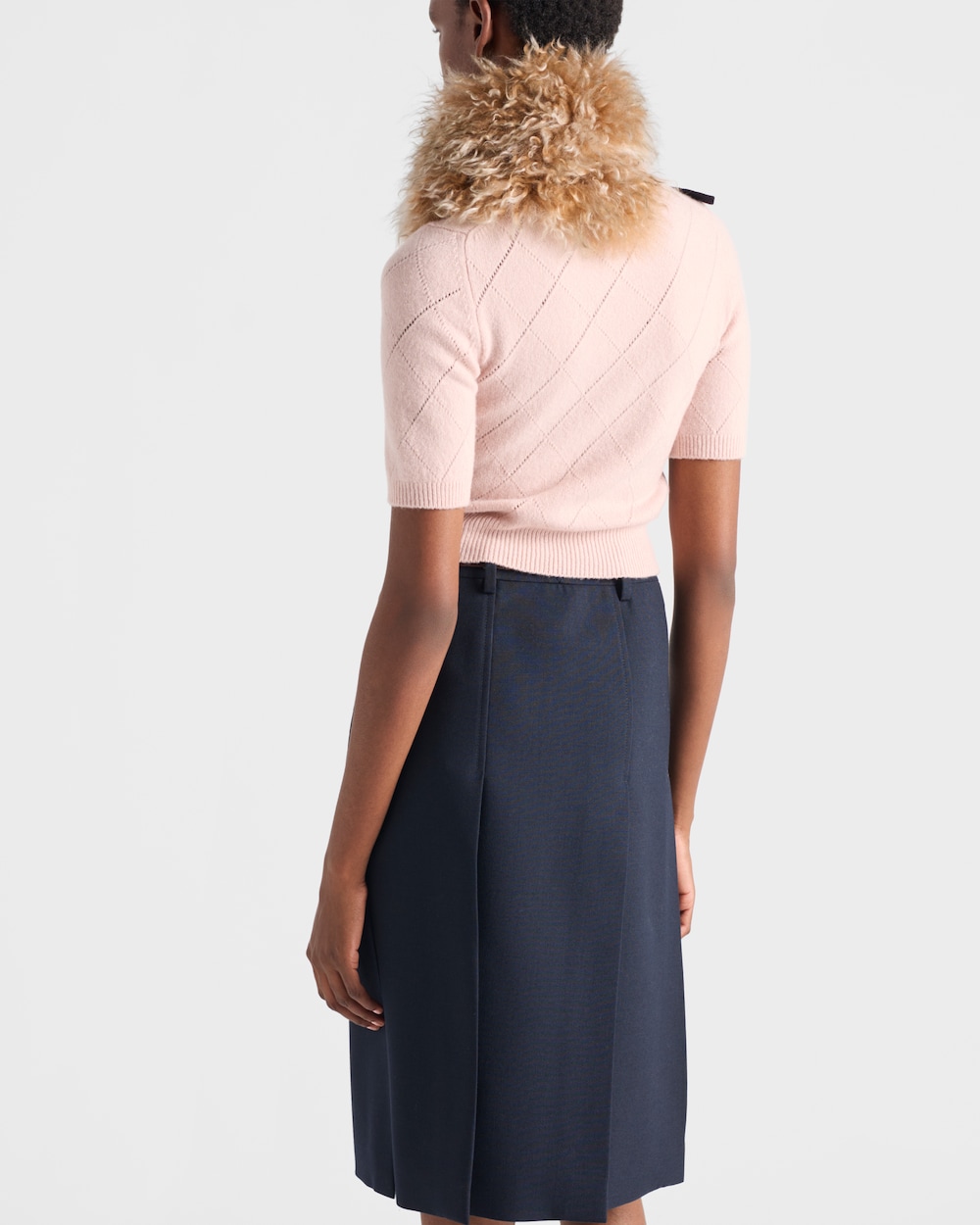 エレガントで繊細な魅力を備えたこのセーターは、洗練されたオープンワークニットのモチーフによって一層引き立てられています。カシミヤの柔らかな風合いが、デザインに快適で洗練された印象を与えます。