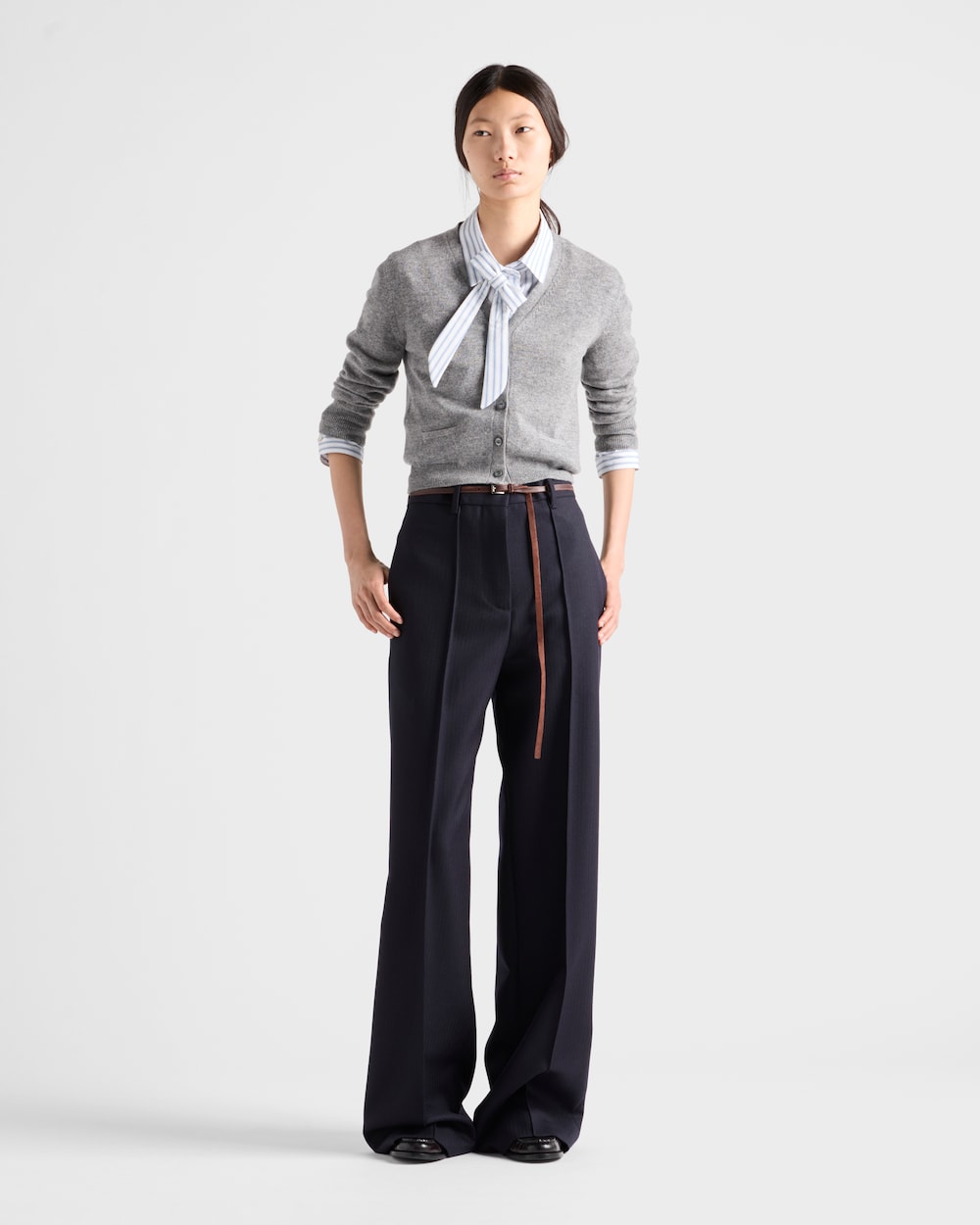 このカシミヤ カーディガンは、シルエットの洗練されたラインを引き立てる柔らかく軽いニットファブリックを使用しています。トライアングルロゴをカットアウトディテールとして再解釈し、洗練されたデザインにシグネチャータッチを加えています。