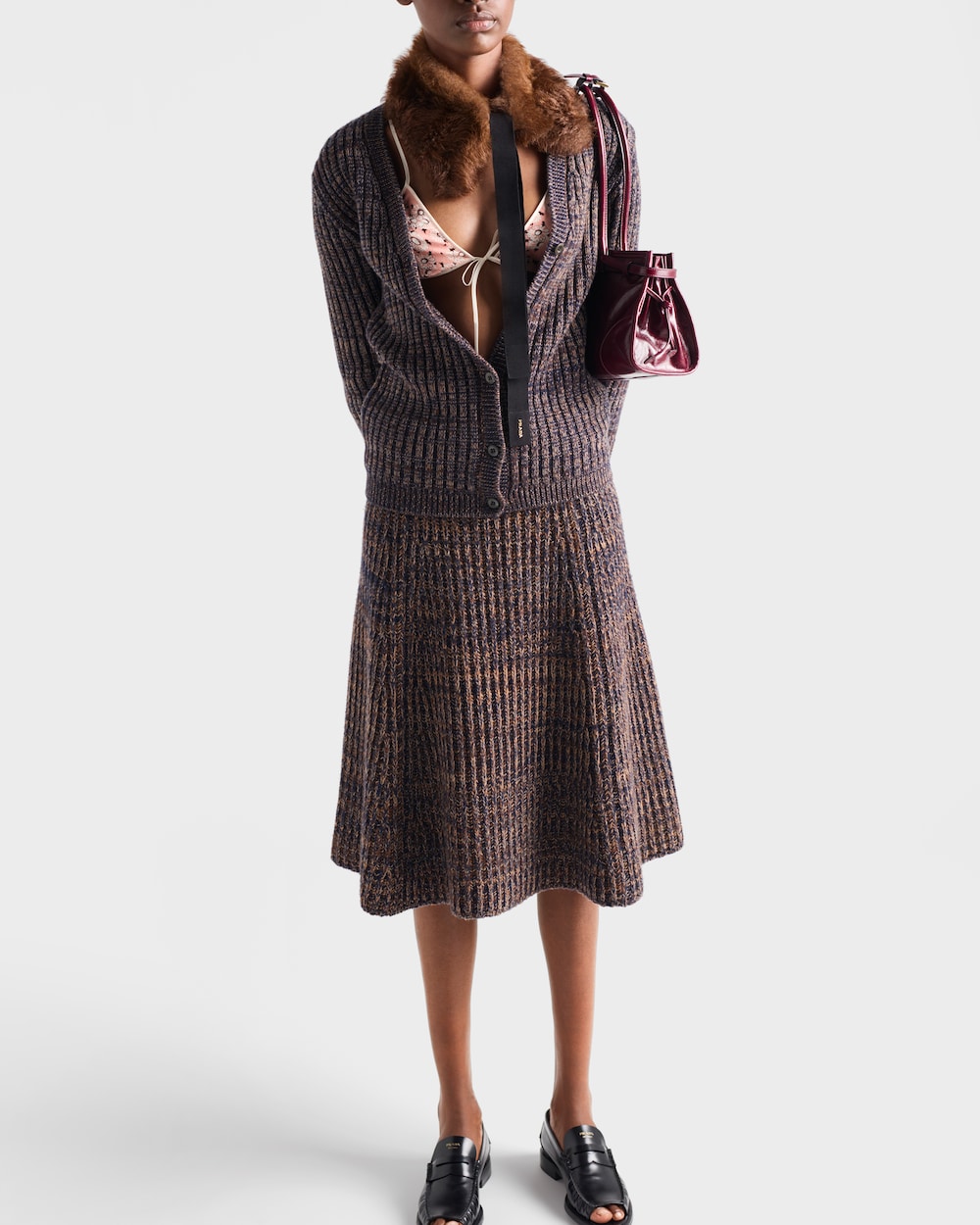 シンプルでクラシックなラインのカーディガンは、杢糸ウールを用いることで、ボクシーなシルエットに奥行きと構造をもたらします。