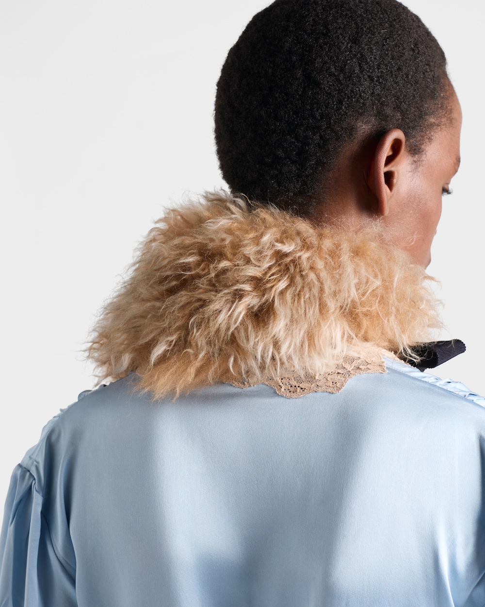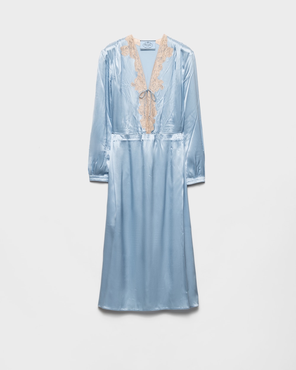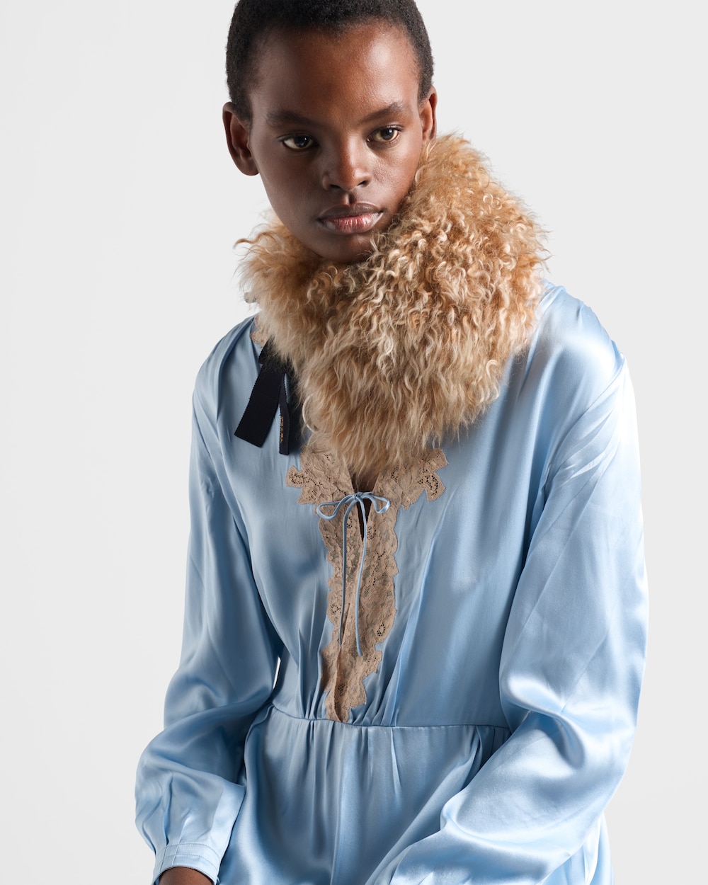 このサテンクレープドレスは、洗練されたタイムレスな女性らしさを体現する一着です。シルクのエレガントな光沢が、軽やかで流れるようなシルエットを際立たせ、ネックラインにあしらわれたレースがロマンティックで繊細な印象を添えています。