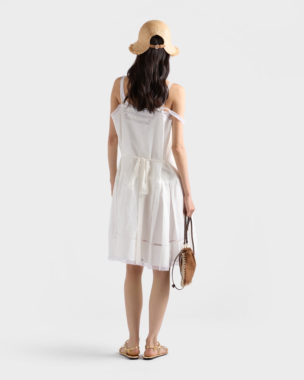 このベージュのドレスは、ゆったりとしたフィット感でシルエットに軽やかな空気感を与えます。レースディテールがヴィンテージ加工の魅力を添え、タイムレスな夏のエレガンスを表現します。
