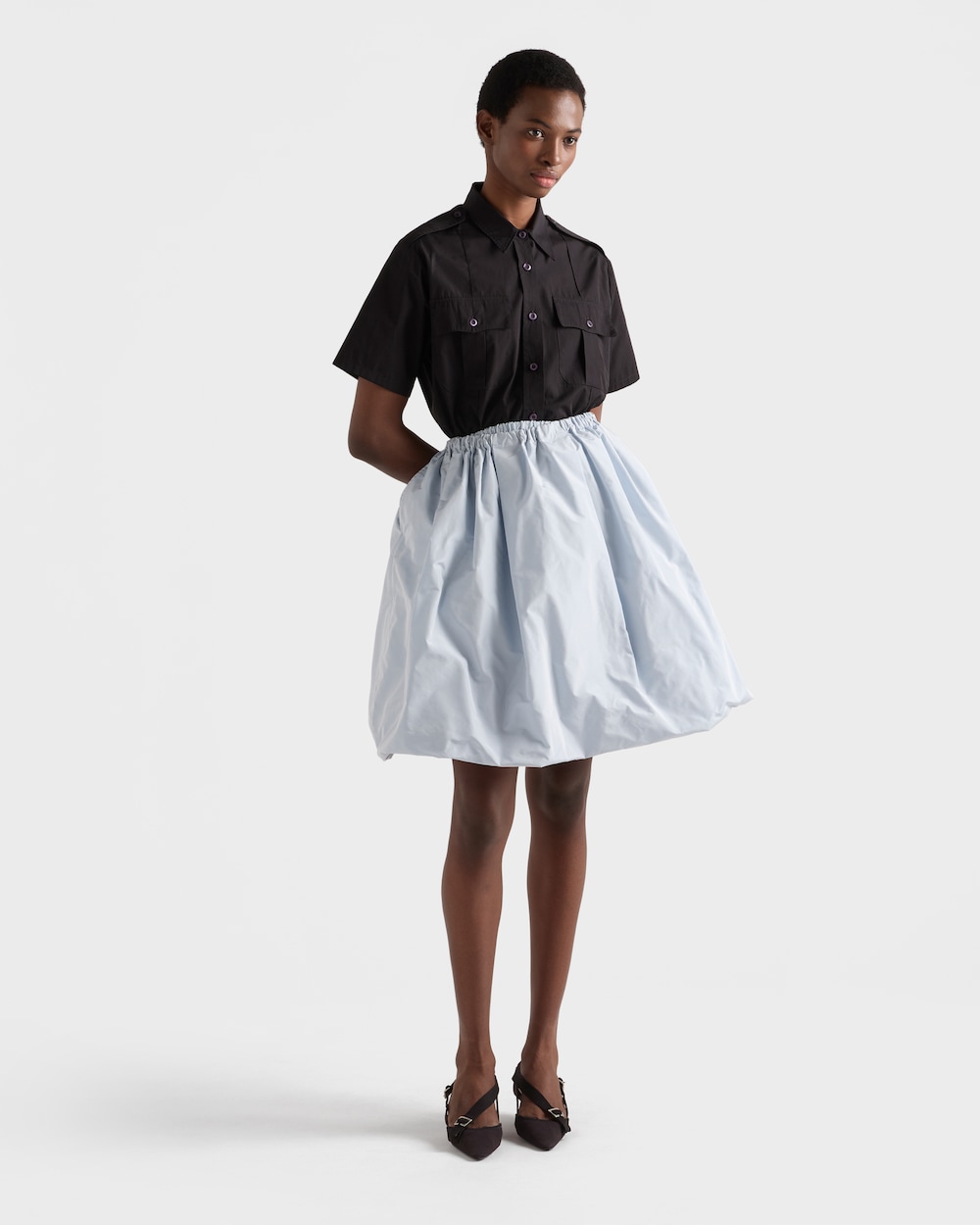 実用的な性格とカジュアルな雰囲気を持つこのシャツは、半袖とストレートカットが特徴です。ユーティリティにインスパイアされたディテールが、コットンポプリンで作られたデザインを豊かにします。