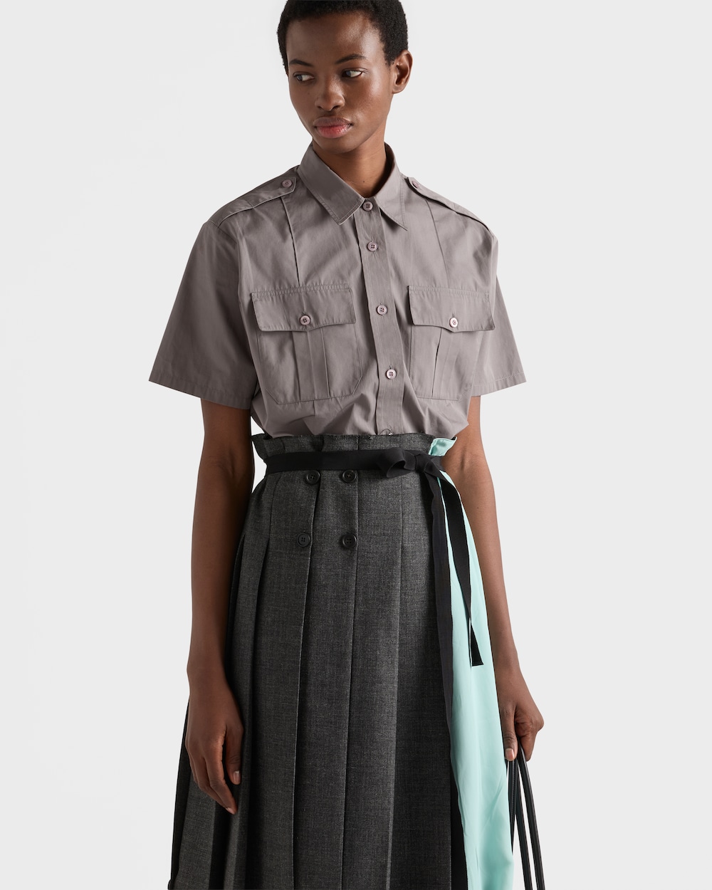実用的な性格とカジュアルな雰囲気を持つこのシャツは、半袖とストレートカットが特徴です。ユーティリティにインスパイアされたディテールが、コットンポプリンで作られたデザインを豊かにします。