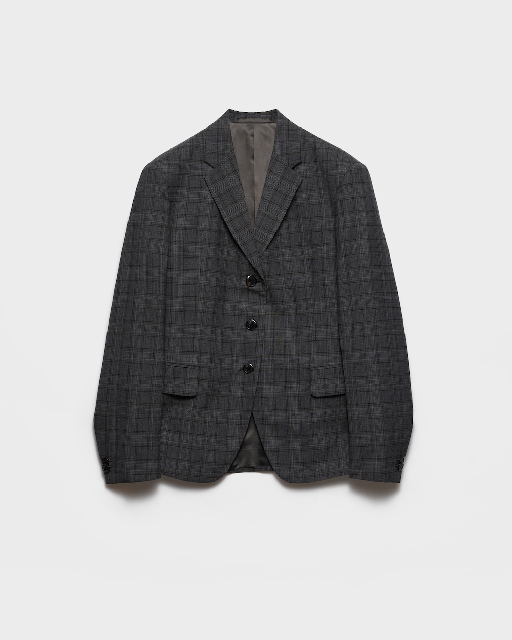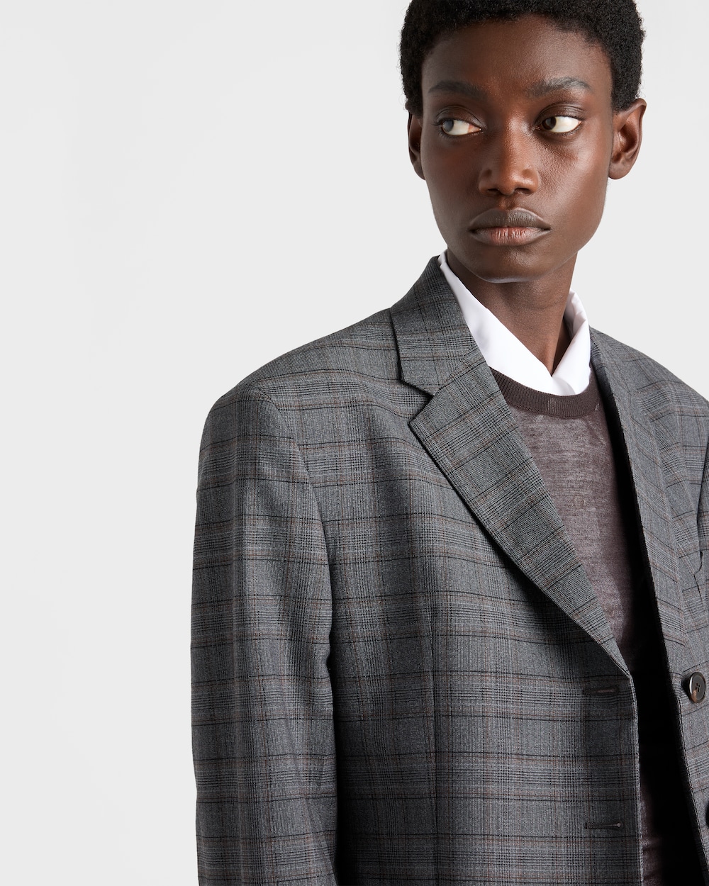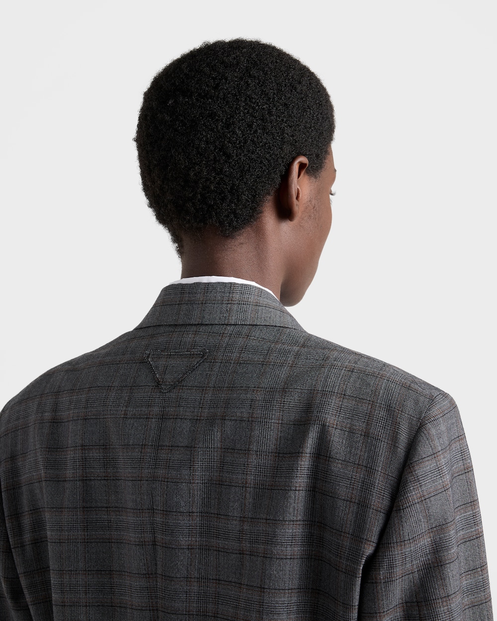 メンズウェアのインスピレーションと革新的なサルトリアルアプローチを融合し、クラシックなウェアがプラダのモダンな言語を語ります。このヴァージンウールジャケットは、伝統的なモチーフを用いてそれを破壊します。