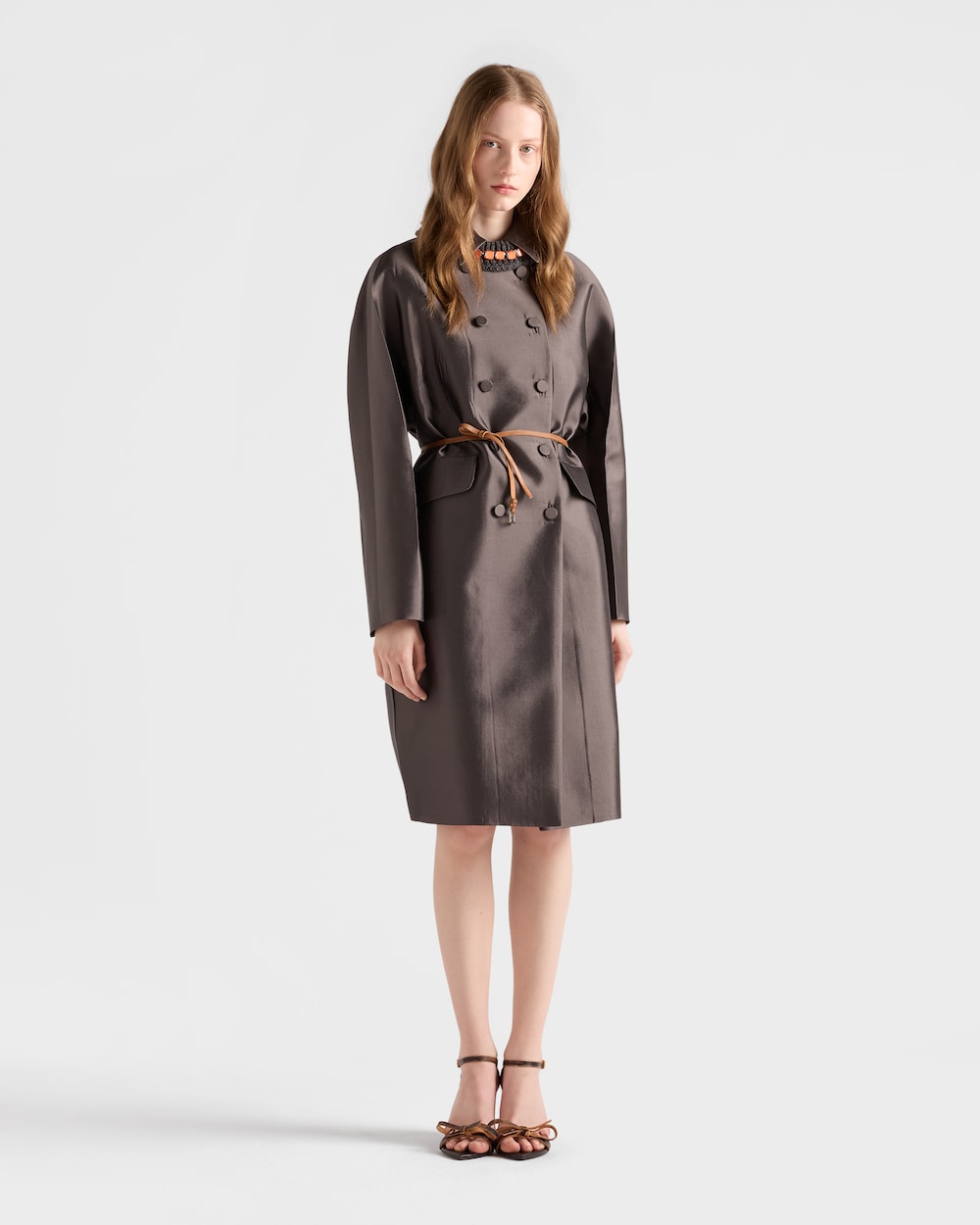 上質なウールブレンドとシルクを使用したストレートシルエットのコートは、洗練されたシンプルさを際立たせます。上質なウールブレンドとシルクを使用したストレートシルエットのコートは、洗練されたシンプルさを際立たせます。