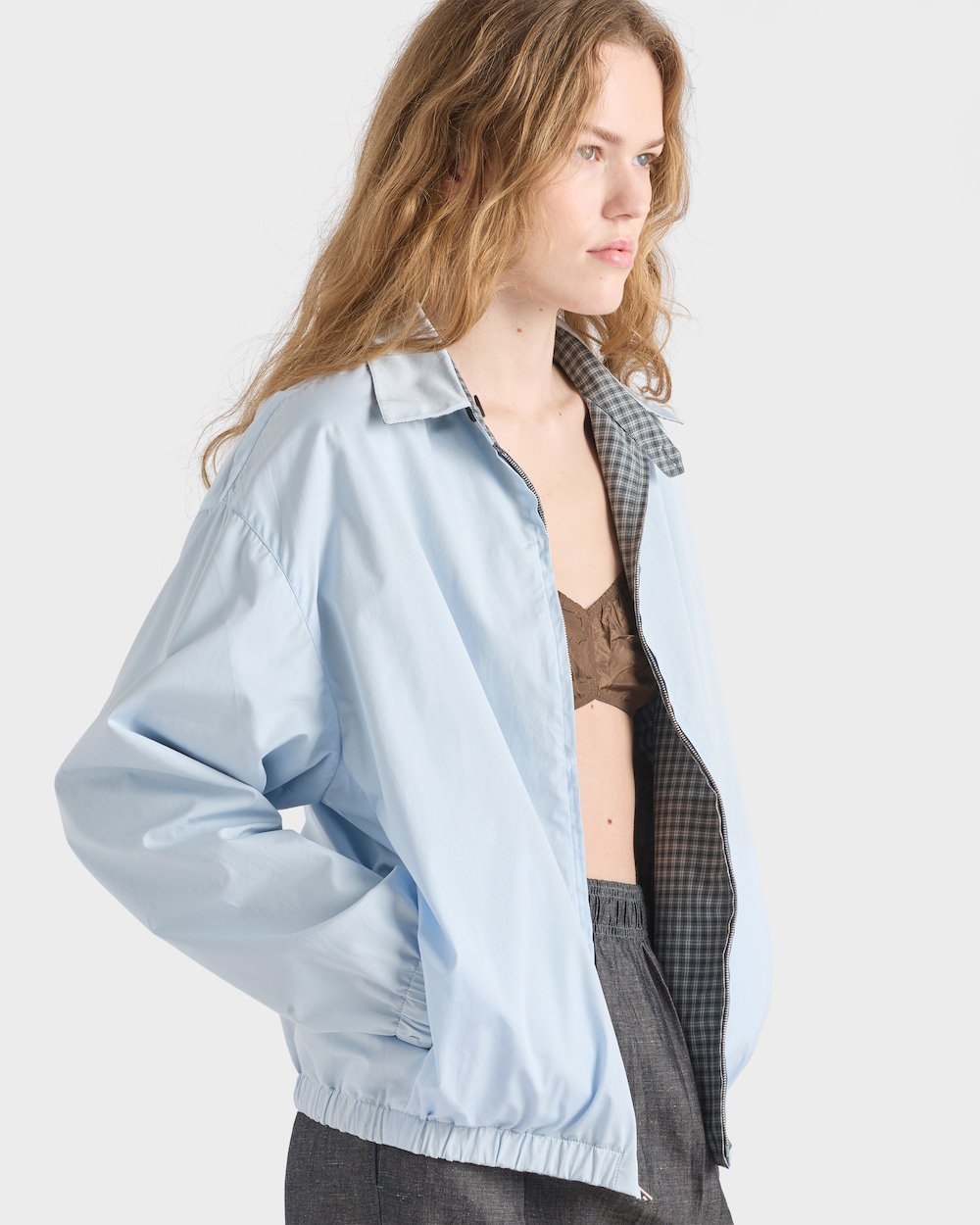 オーバーサイズでありながら軽量なボリュームが特徴のポプリン ブルゾンジャケット。ヴィンテージ感のあるチェック柄で彩られています。シワ加工が施され、使い込まれた風合いと独特のキャラクターを与えるスタイル。