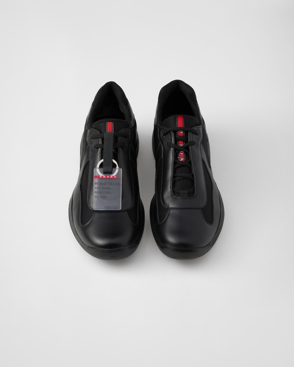 プラダの伝統を体現する、アメリカズカップ スニーカー。90年代にルナ・ロッサチームのためにデザインしたオリジナルスタイルと同じシルエットで復刻。柔らかでありながら耐久性に優れたレザーと、通気性の良い革新的なバイクファブリックを組み合わせた、セーリングの世界をモチーフにしたレースアップデザイン。仕上げにオーバーサイズのラバーソールを施しています。プラダ リネア・ロッサロゴでアイコニックなアクセントを効かせ、さらに取り外し可能な「Beyond the Line」タグがアクセントになったアイテムです。