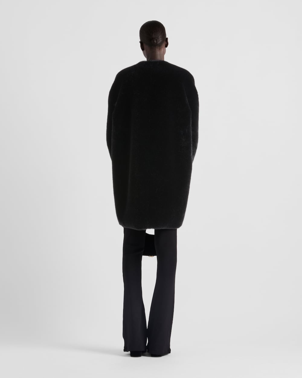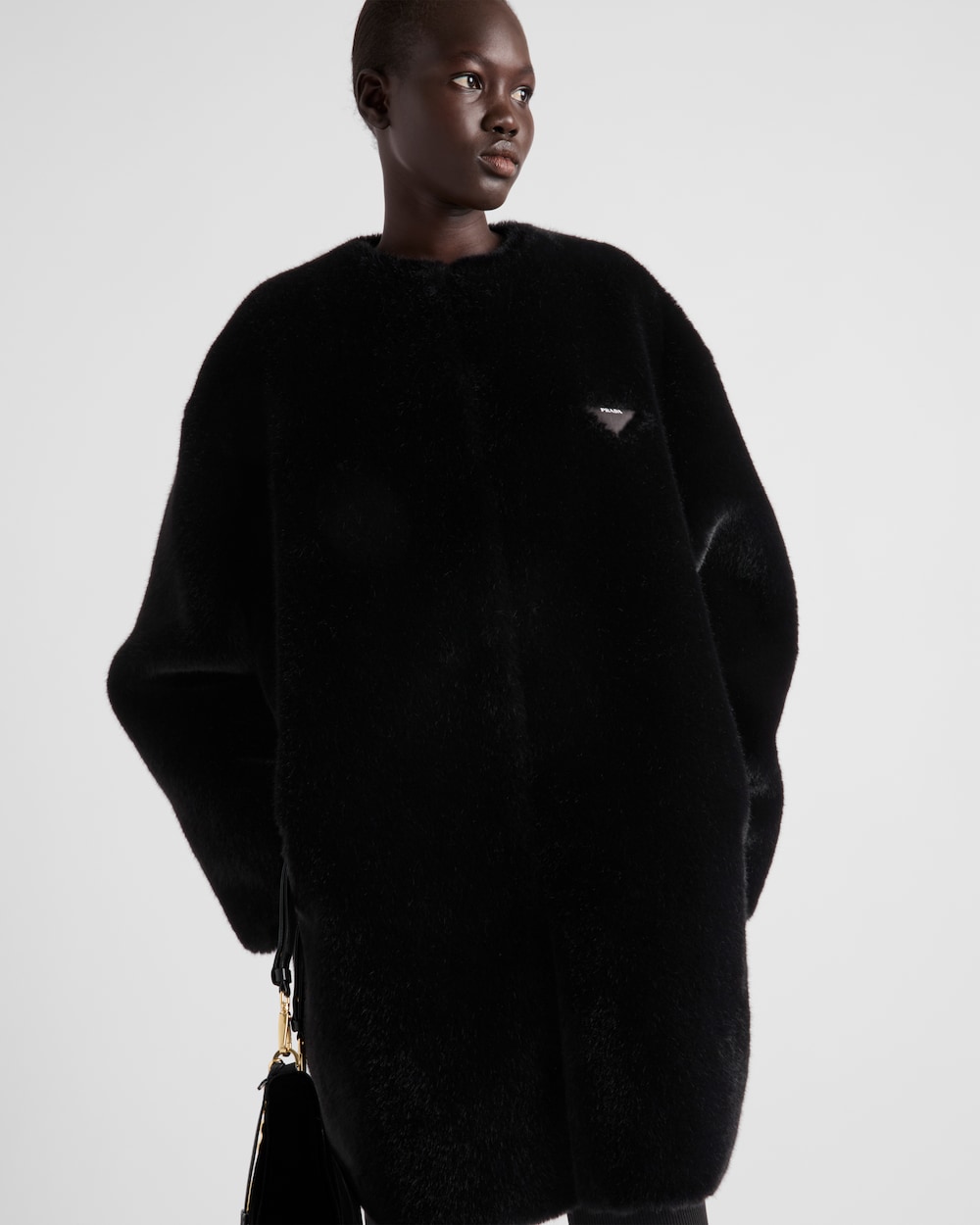 アスペンを使用し、デコンストラクテッドデザインに仕上げた柔らかでエレガントなコート。素材の光沢が繊細な光の陰影を生み出し、洗練されたモダンな表情を与えています。コントラストの効いた素材のトライアングルロゴが現代的なアクセントを添えています。