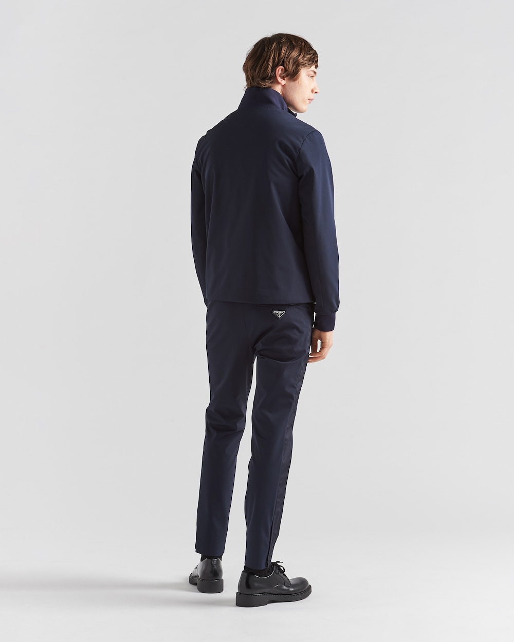 ストレッチテクニカルファブリックを使用したジップスウェットシャツ。クラシックな雰囲気の中に現代的なひねりを加えた、レギュラーフィット、スタンドカラーのデザイン。スポーツウェアとミニマリズムの独創的な組み合わせに、プラダのコレクションが持つ二元性が反映されています。