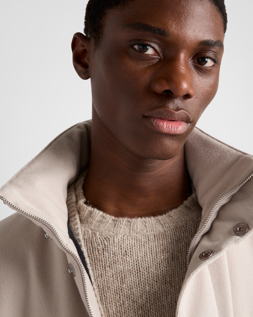 上品でクラシックなシルエットと優れた実用性が魅力の、上質なカシミヤジャケット。洗練されたアイコニックな幾何学形のトライアングルロゴがあしらわれています。