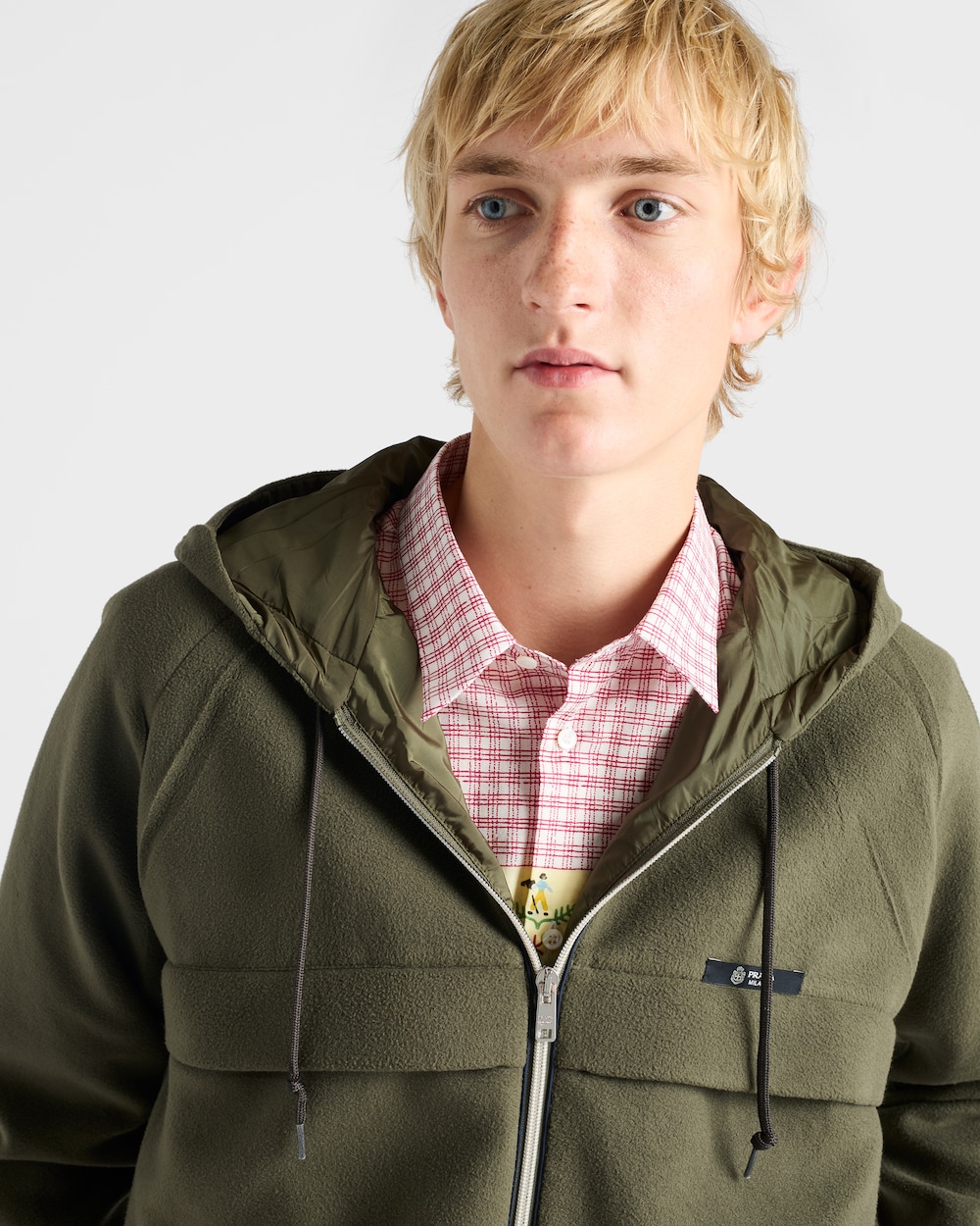 レギュラーフィットと躍動感のあるスピリットが融合したデザインです。ポリエステルのブルゾンジャケットは、シンプルなファスナー開閉式、調節可能なドローストリング、リサイクル素材を使用したライニングを組み合わせています。仕上げ工程で施された折り目が、構築的な美しさとモダンな感性を際立たせています。