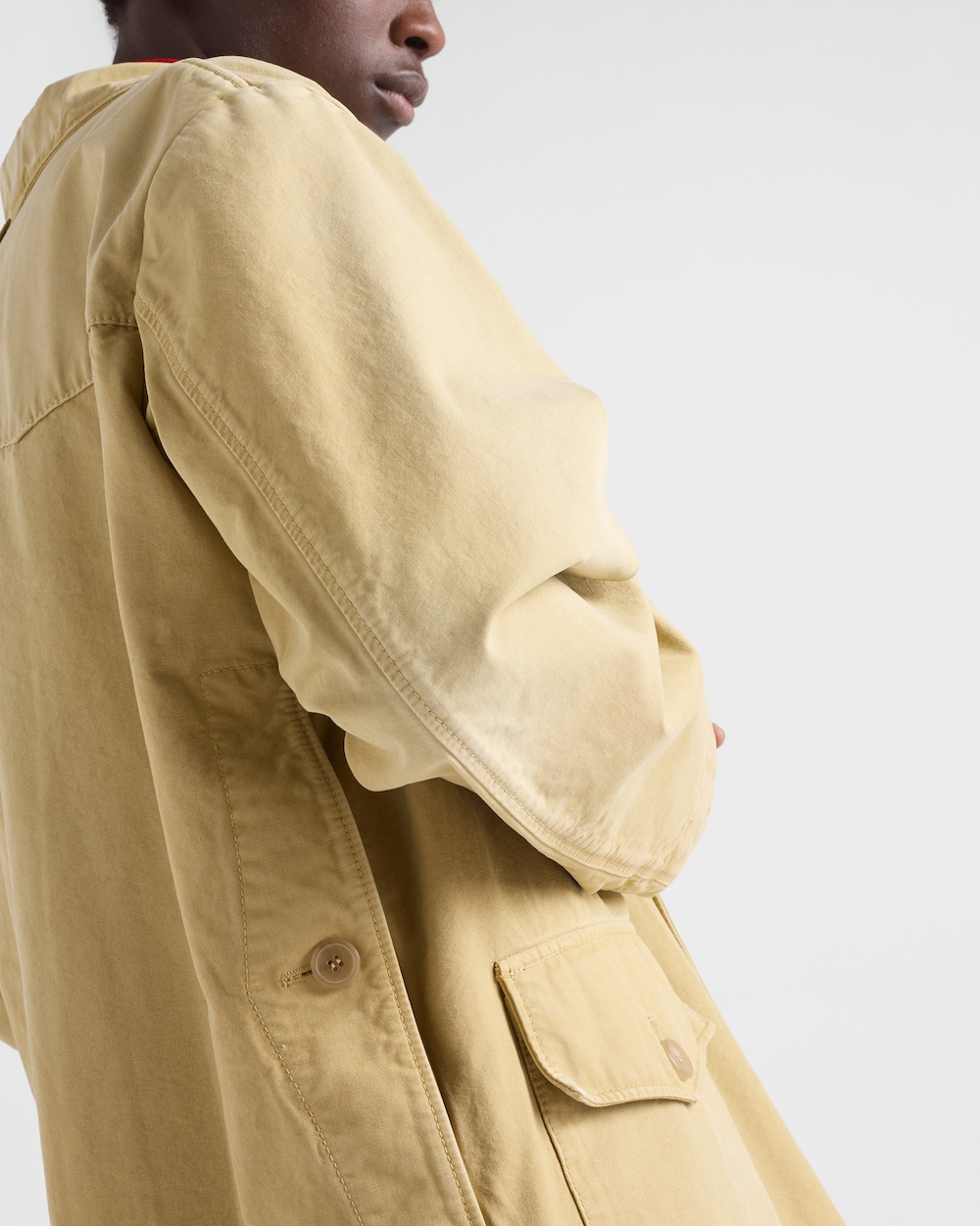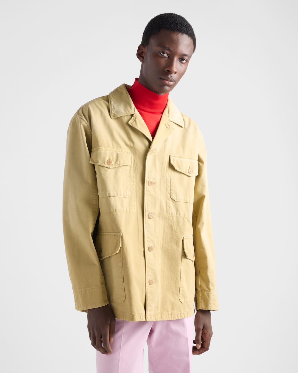 レトロな魅力を持つ軽量コットンブルゾンジャケット。ヴィンテージ加工が施され、個性とキャラクターを引き立てています。ユーティリティにインスパイアされたディテールが、同色のトライアングルロゴで仕上げられた衣服の実用的な本質を強調します。