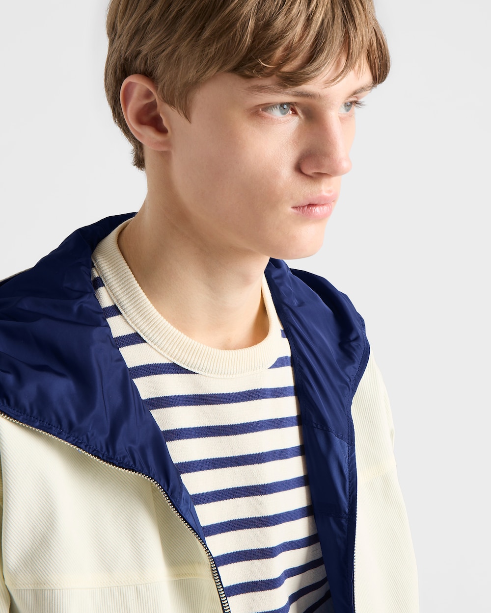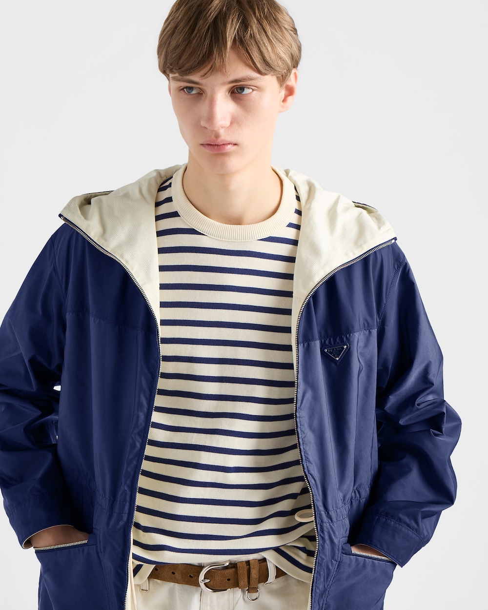 このジャケットは、Re-Nylonを使用してミニマリズムと機能性を兼ね備えています。洗練されたシルエットがスポーツウェアの実用的なシンプルさを現代的なスタイルの表現に変えます。大きなファスナーポケットがスタイルを完成させ、象徴的なエナメルメタルのトライアングルロゴで装飾されています。