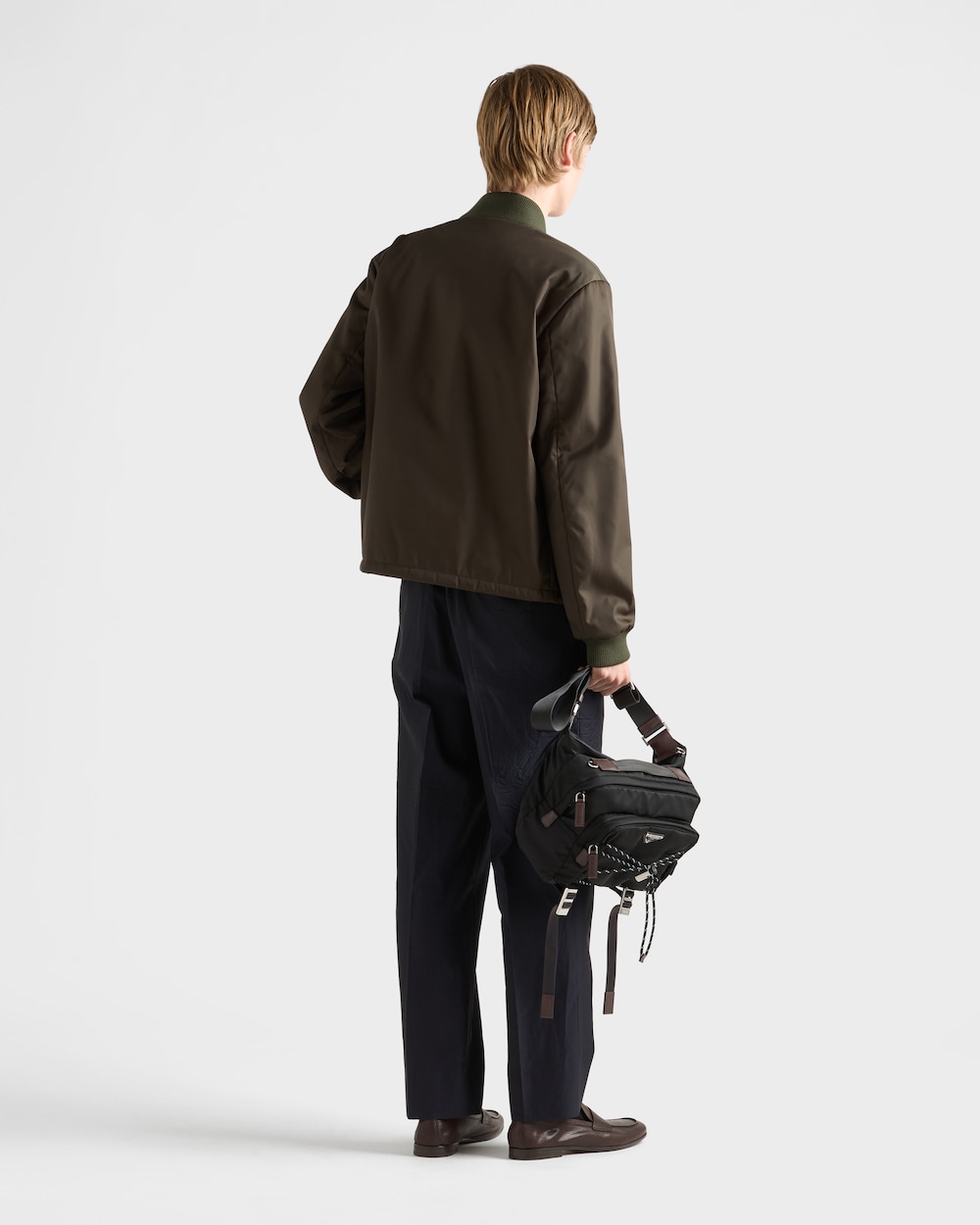 Re-Nylonは、革新的でテクニカルな特性と洗練された仕上がりでプラダの美学の二面性を表現しています。このボンバージャケットは、再生ナイロンのスポーティな機能性と、リブ編みのディテールで完成されたシルエットの現代的なミニマリズムを組み合わせ、アイコニックなトライアングルロゴで装飾されています。