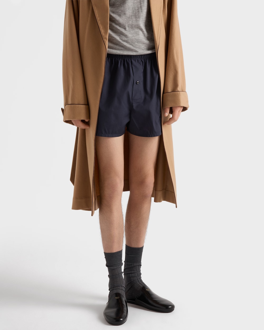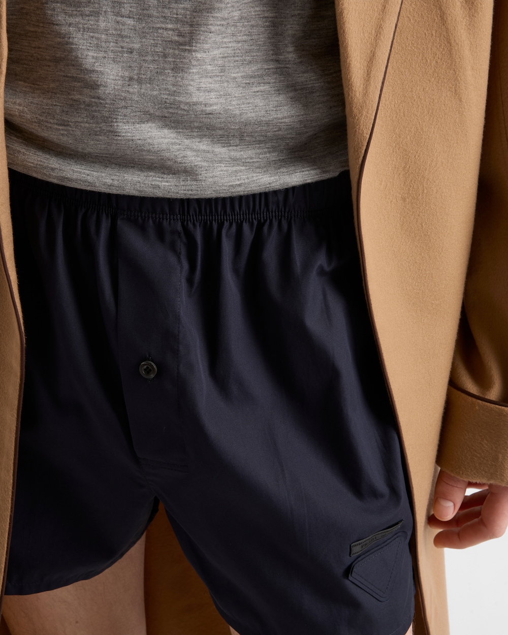 これらの軽量コットン製ボクサーショーツはクラシックなカットで、マザーオブパールのボタンがあしらわれ、アイコニックなトライアングルロゴで装飾されています。
