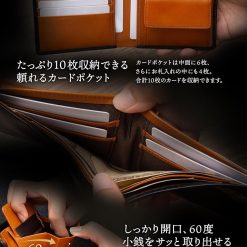 - 【特徴】 お洒落なツートーンの本革製二つ折り財布(ふたつおり財布)/【収納力】 小銭入れ[1区画]、お札入れ[2区画]、カードポケット[10カ所](うち4カ所はお札入れの中の隠しポケット)