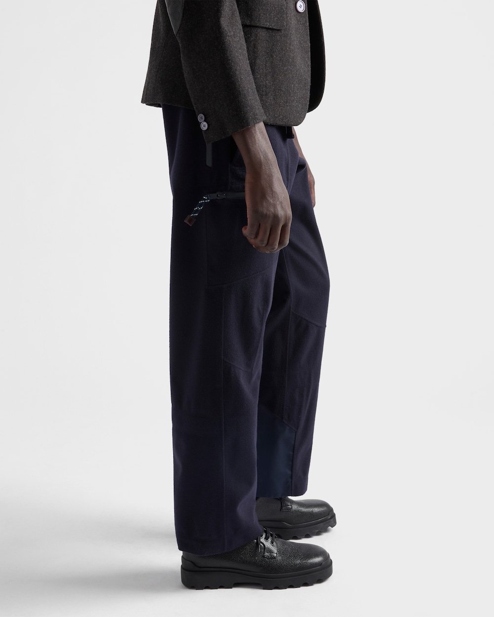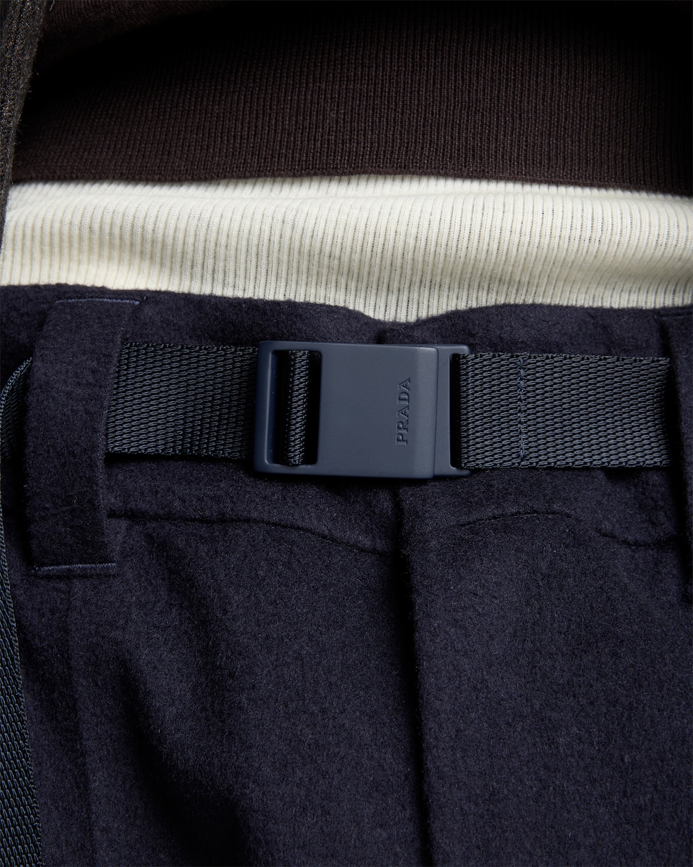 カシミヤの上質な風合いに、スポーティな汎用性を融合させたワイドレッグパンツです。ファスナー付ポケットと洗練された構造が実用的なラグジュアリーを表現し、プラダのサルトリアルロゴラベルによって独自のものにしています。