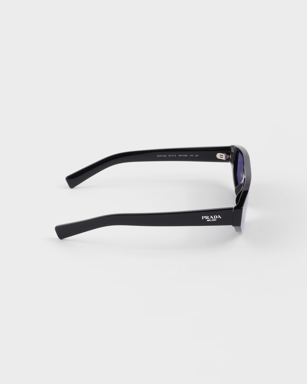 特徴的なナローレクタングルデザインのアセテートサングラス。現代的なフレームは、フロントの柔らかな曲線と力強く洗練されたラインを融合しています。大胆なテンプルにはプラダ ミラノ ロゴが装飾されています。