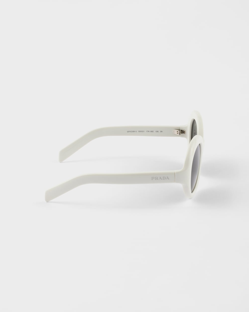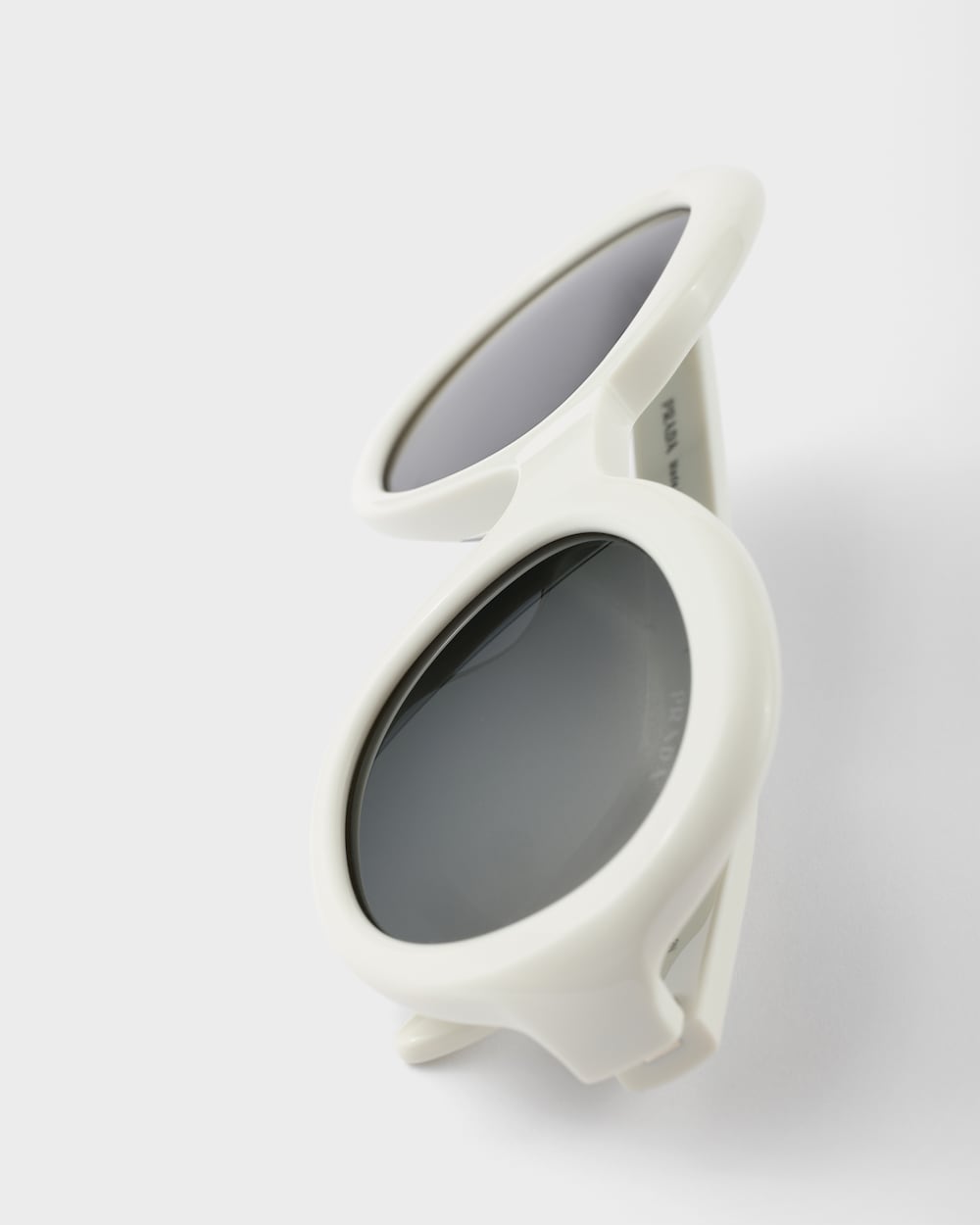 洗練されたラウンドデザインのアセテートサングラス。オーバーサイズのフレームは、柔らかくカーブしたリムが特徴で、洗練された現代的な雰囲気を醸し出しています。カーブしたテンプルにはエナメルのプラダロゴが装飾されています。