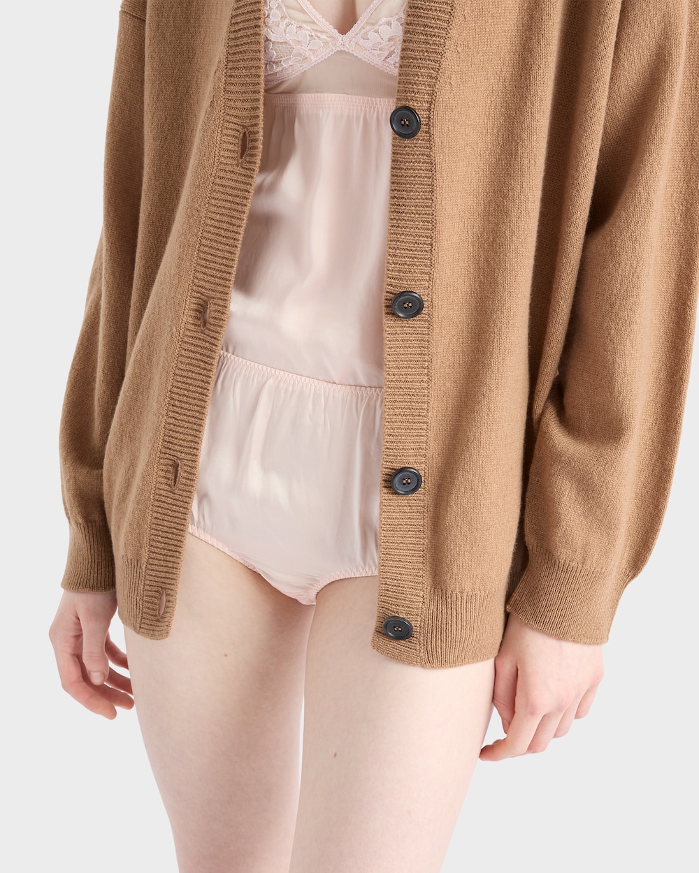 このロマンティックで洗練されたサテンのトップは、ランジェリー風のデザインで、繊細なレースのトリムが特徴です。