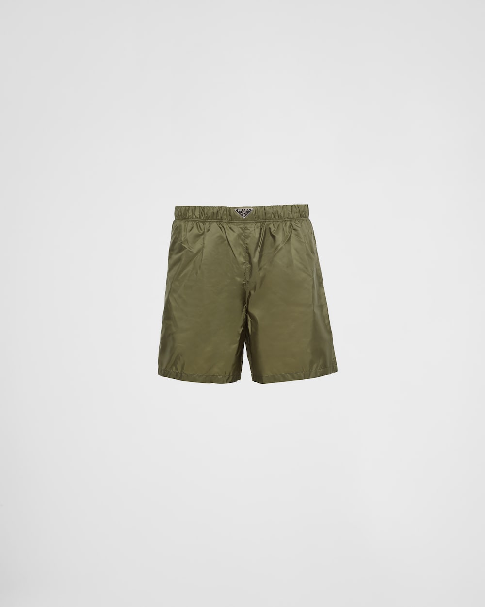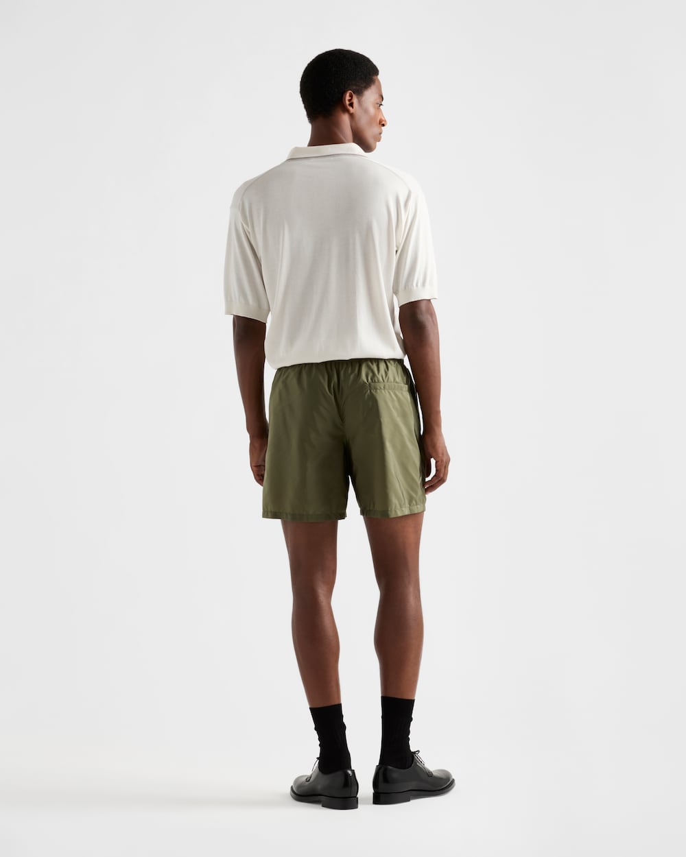 海洋プラスチックをリサイクルして作られた革新的な再生ナイロンファブリック、プラダのコレクションを象徴するRe-Nylonを使用した、スポーティで洗練されたデザインのスイムショートパンツ。エラスティックウエストバンドが特徴のクラシックなシルエットに、アイコニックなエナメルメタルのトライアングルロゴをあしらいました。 サスティナブルなお手入れ方法:製品の風合いを保つため、また環境への負荷を軽減するために、製品を頻繁にクリーニングすることを推奨しておりません。使用後は風通しの良い場所で陰干ししていただき、クリーニングが必要な場合は環境に配慮したクリーニング店でドライクリーニングをすることをおすすめします。