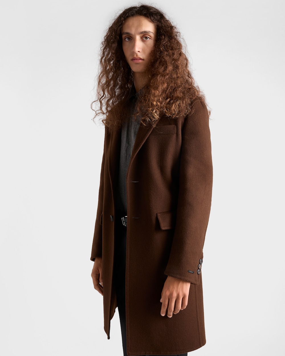 このプラダのサルトリアルラベルのコートは、カシミヤを使用したタイムレスでクラシックなシルエットです。シングルブレストシルエットの洗練されたラインは、ハンドステッチで仕上げられたダブルウィーブ生地によって強調されています。