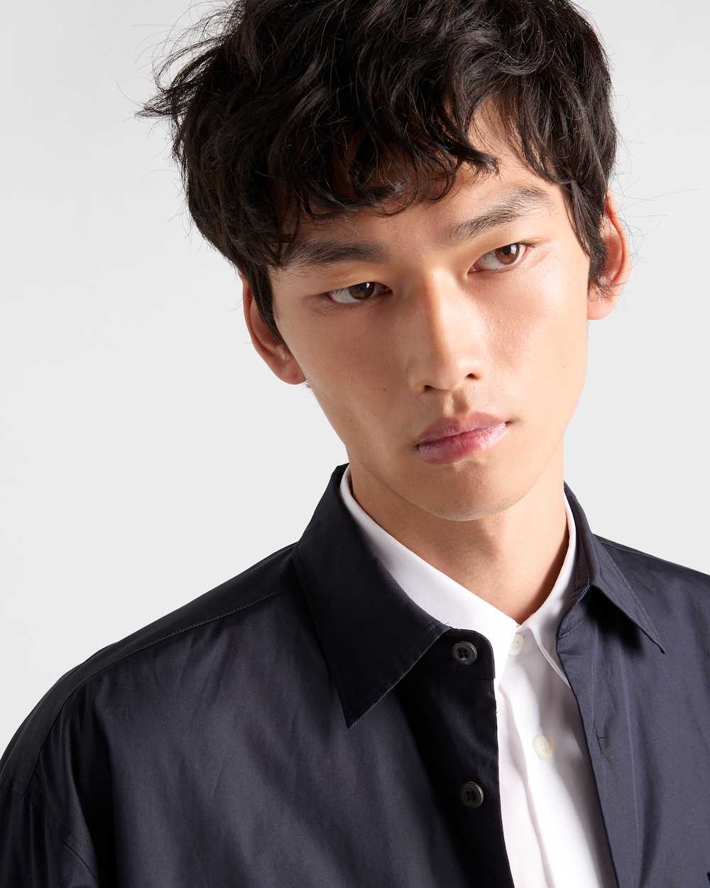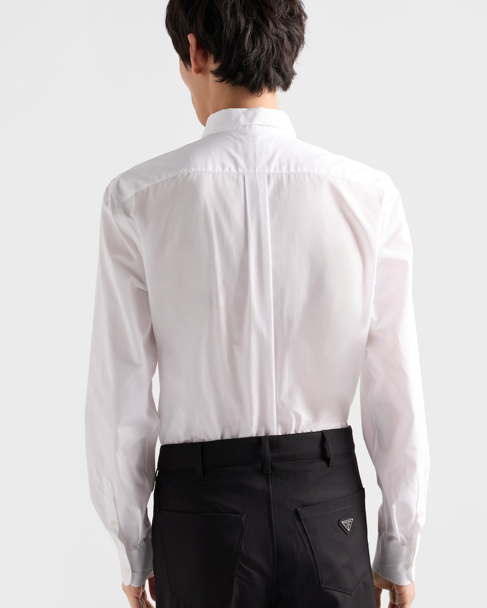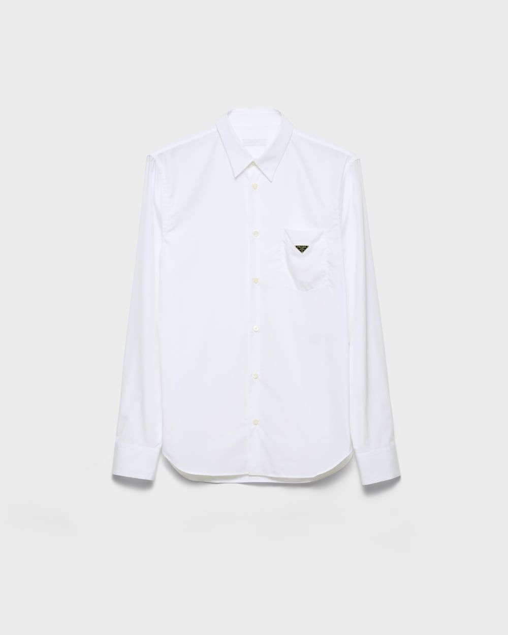前面に小さなパッチポケットとラウンドカットを備えたコットンシャツは、クラシックなカットが特徴です。エナメル トライアングルロゴが、汎用性のある洗練されたデザインにシグネチャーのアクセントを加えています。