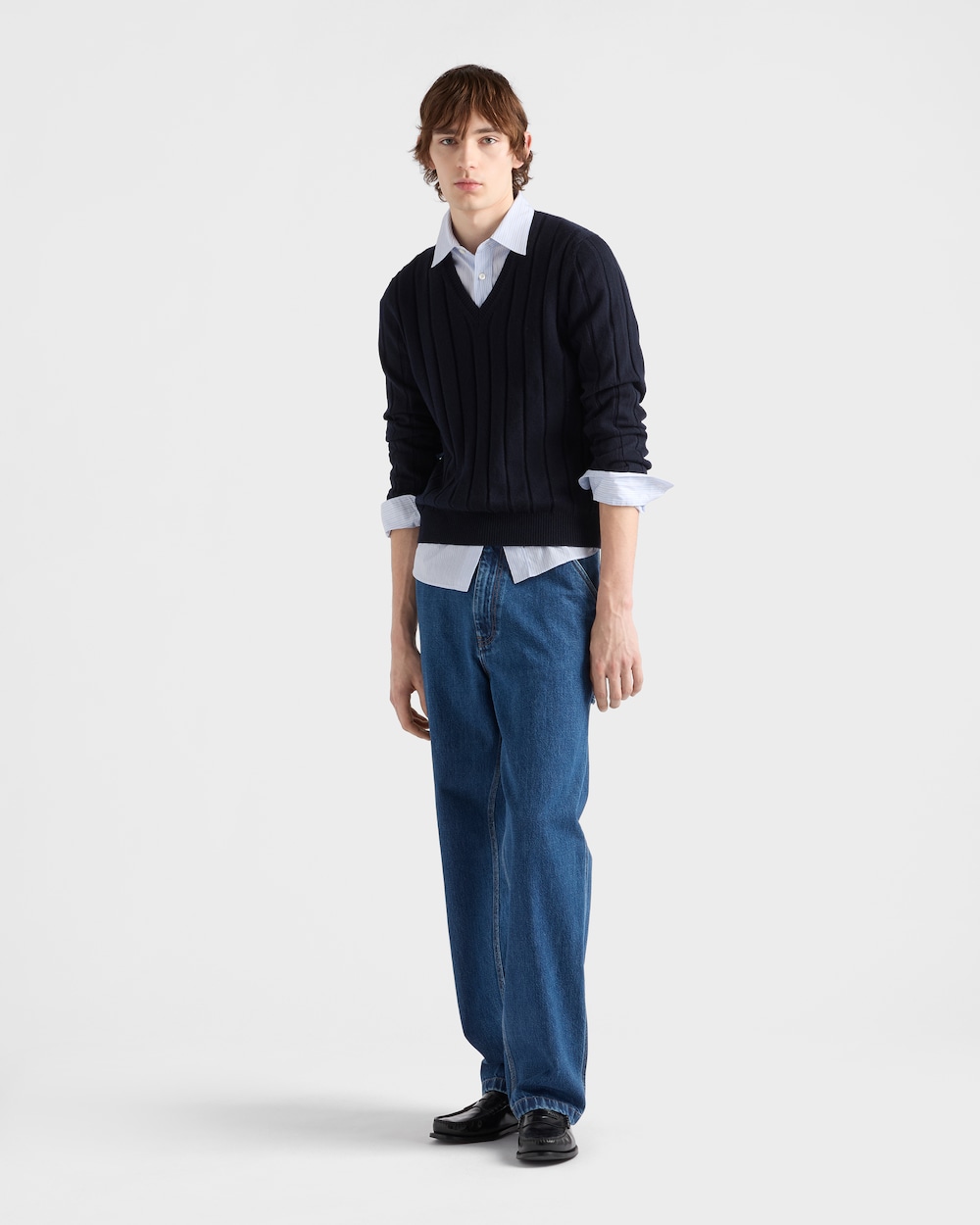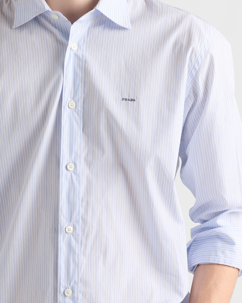 このコットンシャツは、ラウンドカットの裾とマザーオブパールボタンで特徴付けられたクラシックなシルエットを持っています。前身頃にあしらったエンブロイダリーレタリングロゴが洗練されたアクセントを添えています。