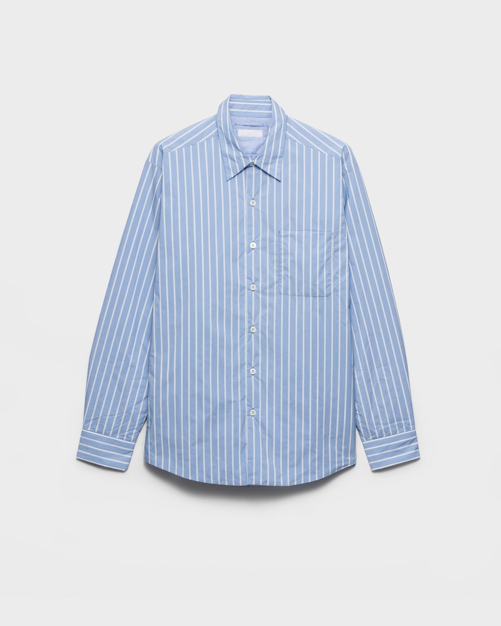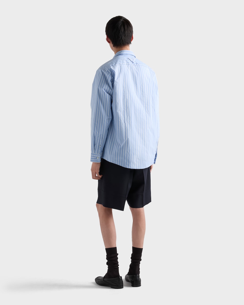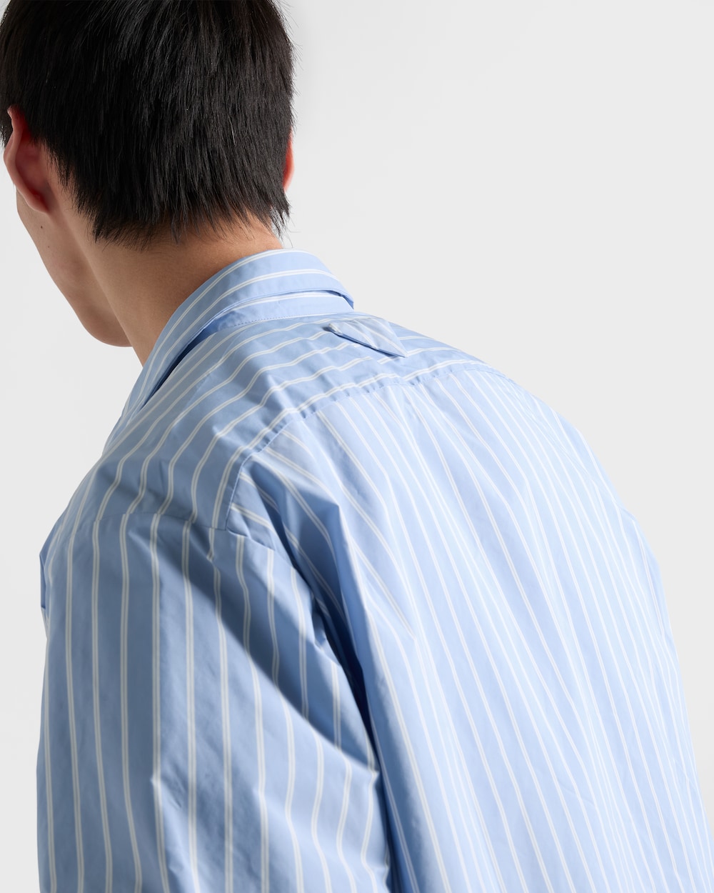 クラシックなシャツが、実用的で革新的、かつ多用途な特徴を持つプラダの象徴的なファブリックであるRe-Nylonで再解釈されています。スタイルはリラックスフィットでラウンドカットを採用し、同色のトライアングルロゴで独特のアクセントを添えています。