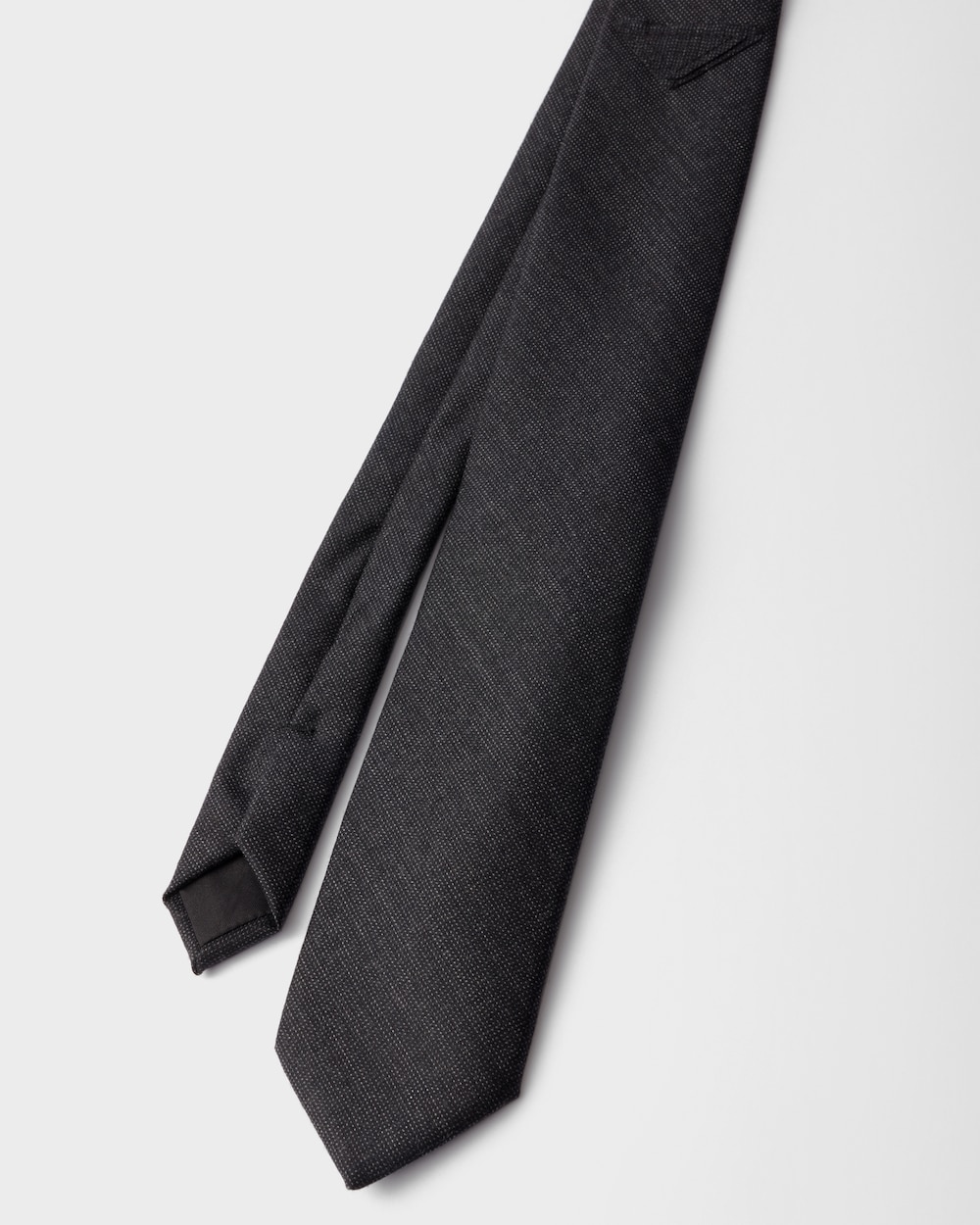 ネクタイはフォーマルなエレガンスの象徴であり、ミニマルなウールデザインによって現代的に再解釈されています。トライアングルロゴの洗練されたアイコニックなフォルムが、アクセサリーにモダンなニュアンスを添えています。