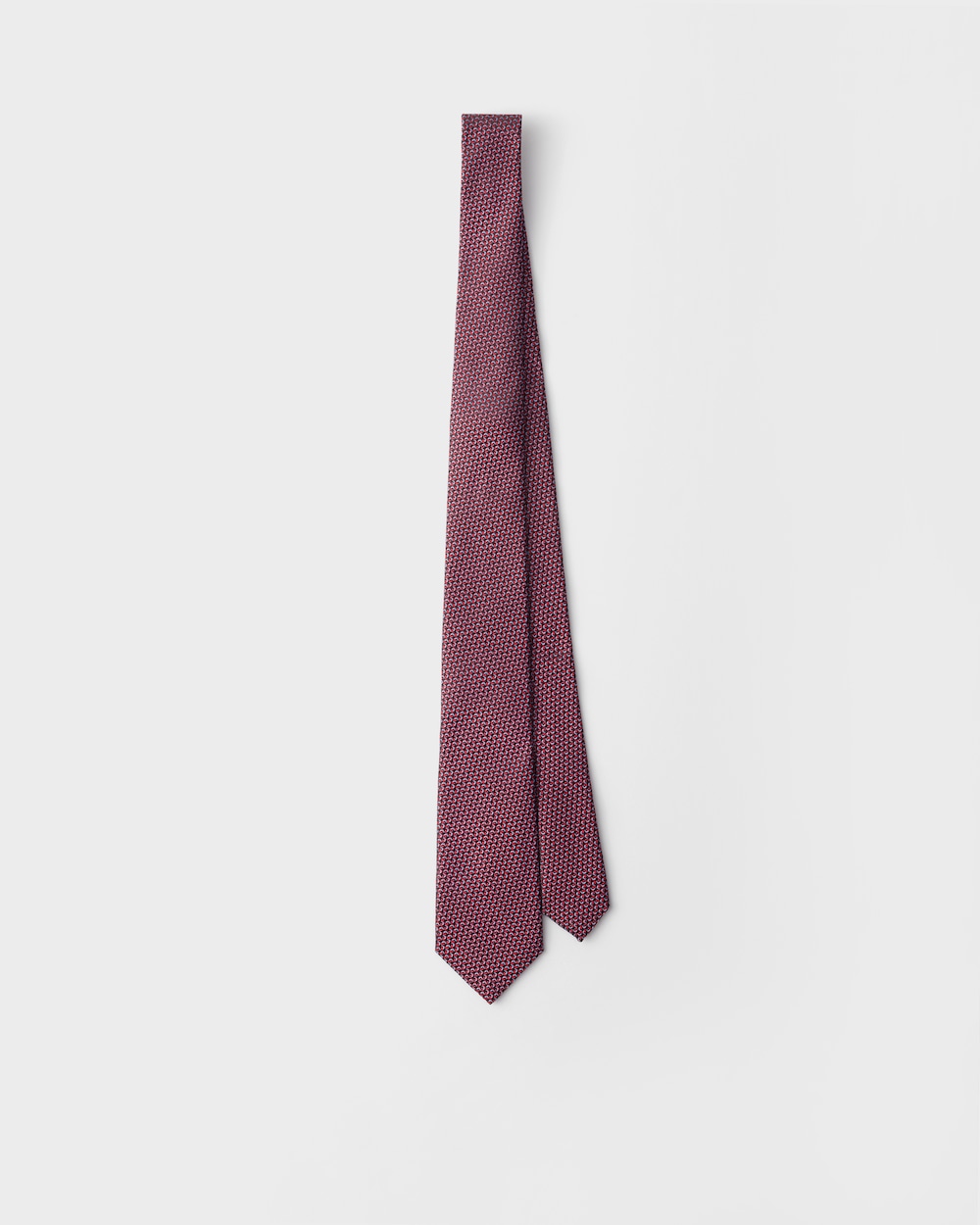 このタイは高品質のシルクを使用したクラシックなミニマリストデザインです。プラダのサルトリアルラベルがアクセサリーにタイムレスなエレガンスを添えています。