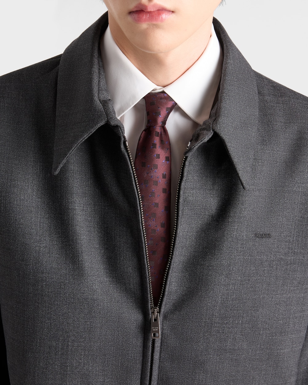 このタイは高品質なシルクを使用したクラシックなミニマリストデザインです。プラダのサルトリアルラベルがアクセサリーにタイムレスなエレガンスを添えています。