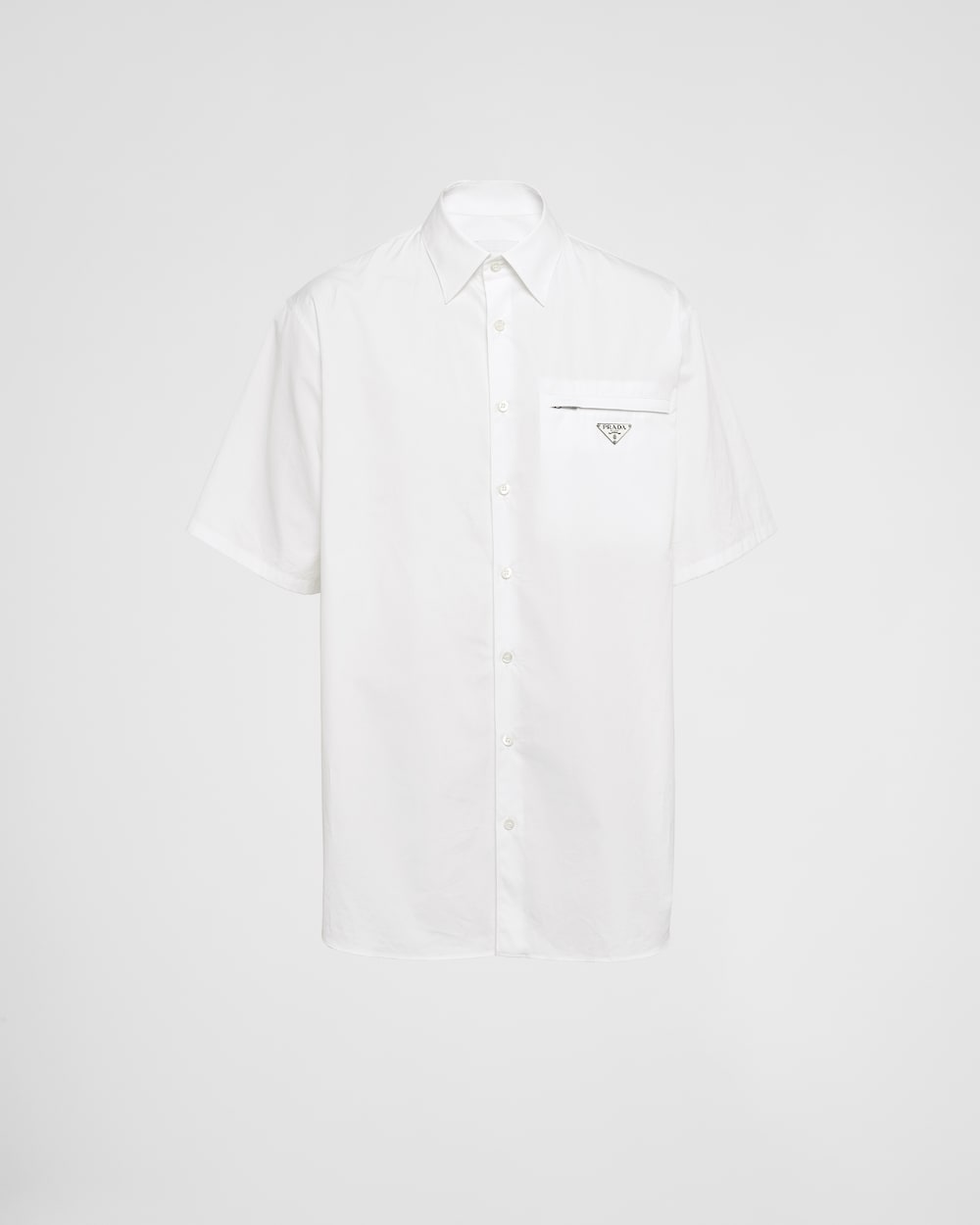 現代的でミニマルなデザインに仕上げた、ボックスシルエットの半袖コットンシャツ。クラシックなディテールに、ファスナー付ポケットなどのスポーティなタッチを掛け合わせ、エナメルメタルのトライアングルロゴをあしらっています。