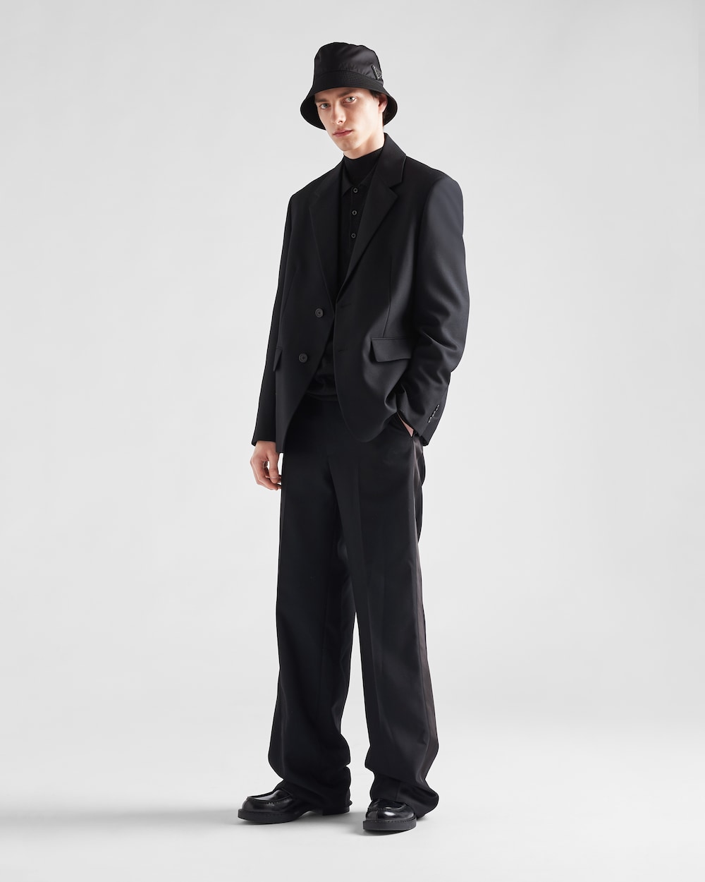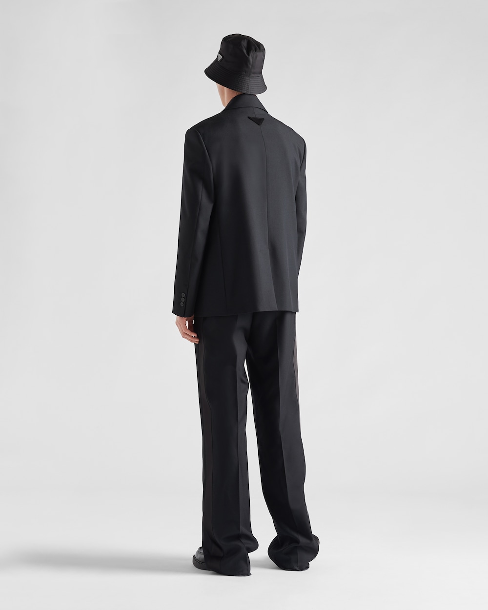 トラッド感と洗練されたディテールが際立つ、エレガントなテーラードカットのクラシックなシルエットが特徴のウール混紡シングルブレストジャケット。プラダのアイコニックなサルトリアルラベルがあしらわれています。