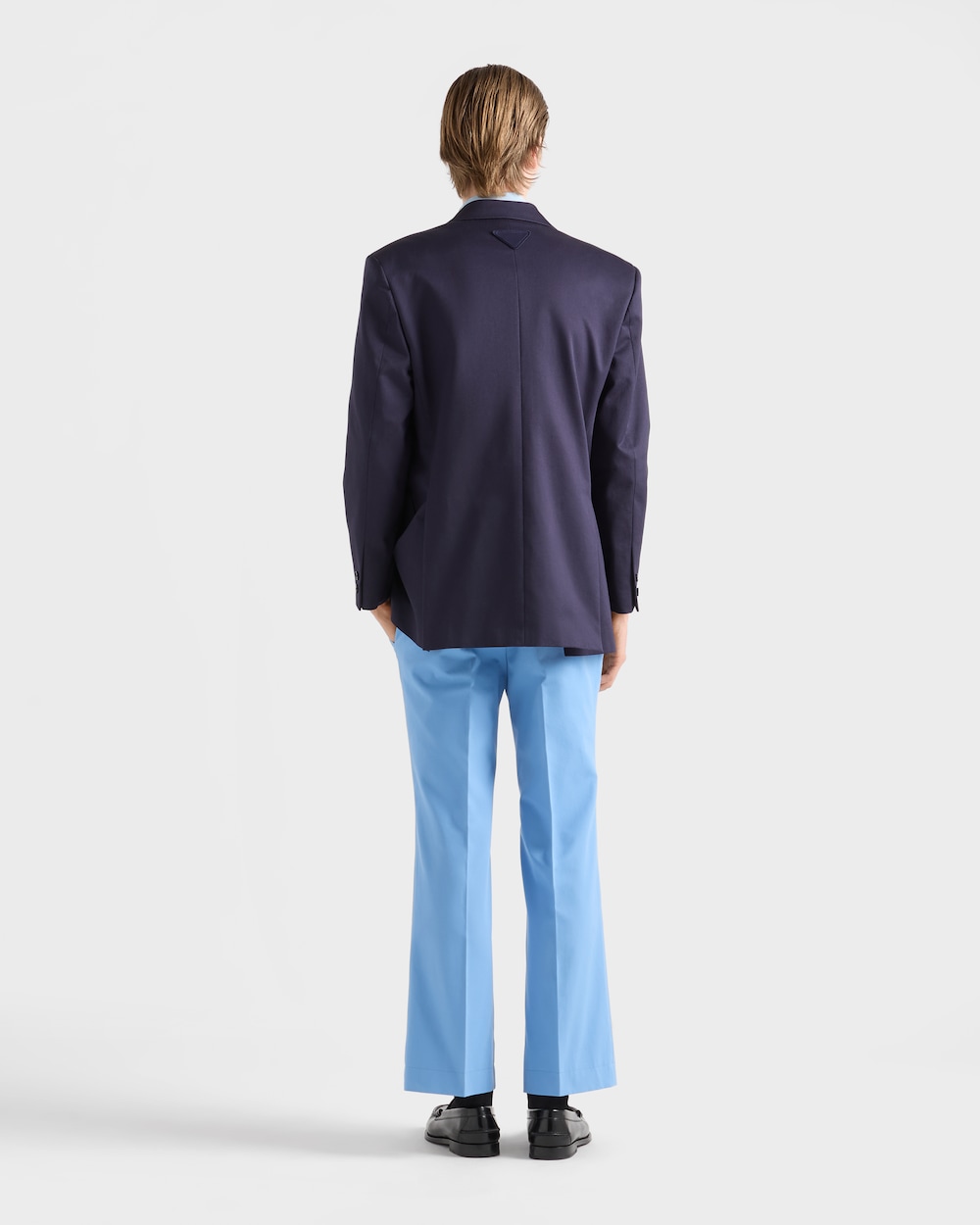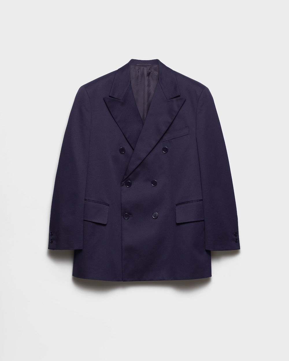 軽やかさと構造を組み合わせたウェアで表現されるフォーマルエレガンスの新しいコンセプト。このテーラードコットンジャケットは、ピークラペルを備えたダブルブレストシルエットで、同色のトライアングルロゴが付いています。