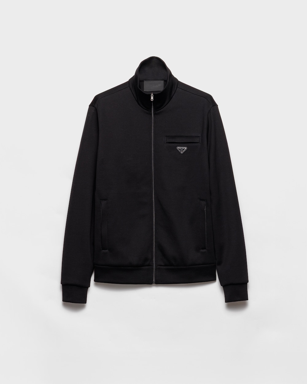 このテクニカルコットン製のブルゾンジャケットは、スポーティなスタイルと洗練されたシルエットが特徴です。ボクシーカットとスタンドアップカラーで定義され、アイコニックなエナメルメタルトライアングルロゴで装飾されています。