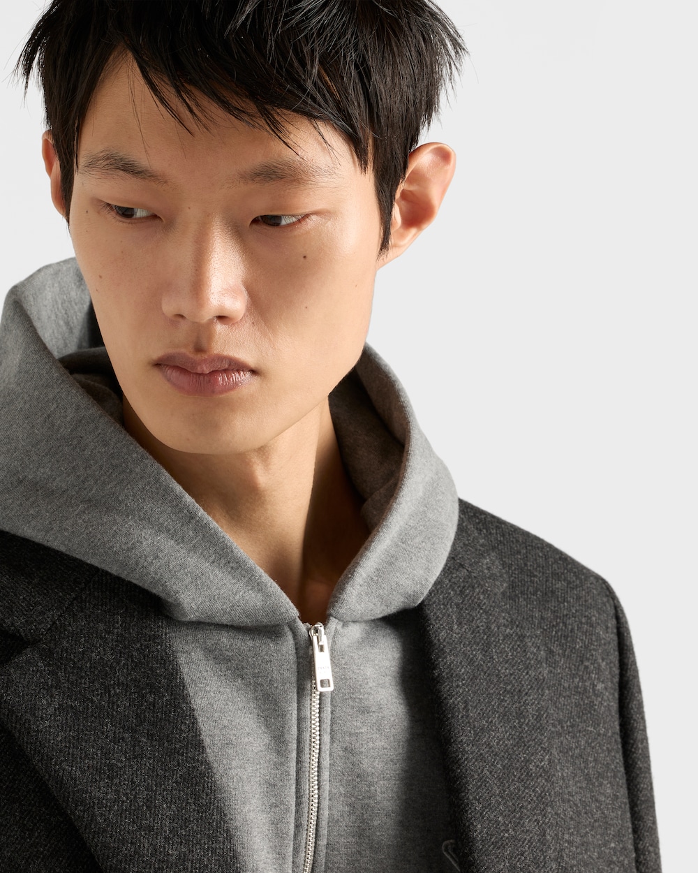 上質なテキスタイルと職人技がスポーティなシルエットに融合したフーディージャケット。ファスナー開閉式。