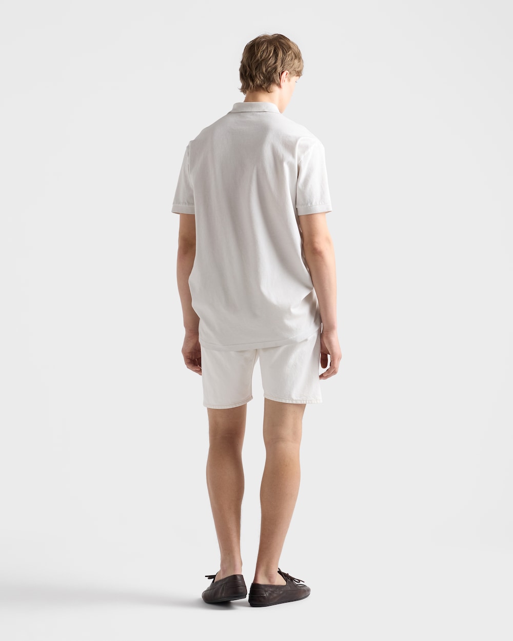 コントラストカラーの特徴的なミニマルロゴが、クラシックなカットのシャツにブランドアイデンティティの新しい表現をもたらします。真正性とつながりの象徴であり、控えめさと個性のバランスの中でクラフツマンシップとモダニティを融合し、プラダならではの調和のとれたエレガンスの力強さを体現しています。