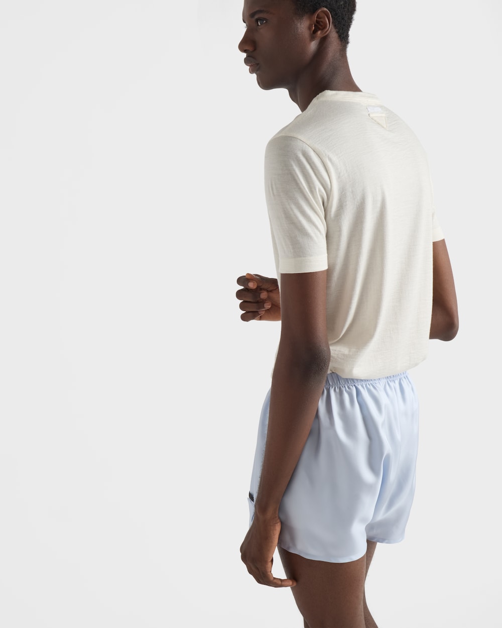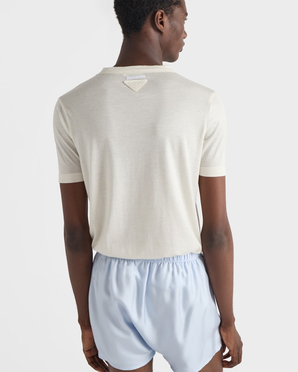 上質なカシミヤとシルクブレンドが、このTシャツに暖かく軽やかな質感と洗練された印象を与えます。スリムフィットが特徴の半袖シルエットは、同色のトライアングルロゴで飾られています。
