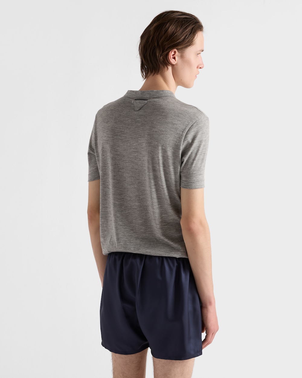 上質なカシミヤとシルクブレンドが、このTシャツに暖かく軽やかな質感と洗練された印象を与えます。スリムフィットが特徴の半袖シルエットは、同色のトライアングルロゴで飾られています。