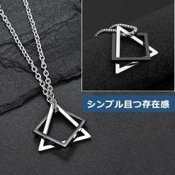 【格好良い】最近流行ってる三角形と四角形が繋がるネックレスのタイプで、シンプルだけどシンプルではない、巧みなデザインです。また、一つ一つの輪が交互に異なった面を向いているため、きらきらした印象を与えます。