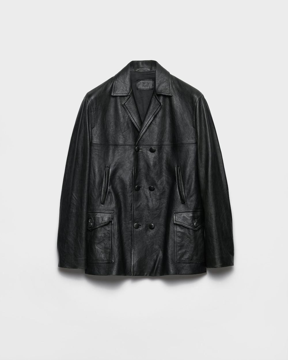 ナッパレザー(羊革)の柔らかい質感が、洗練された職人技によって強調され、ヴィンテージ感のあるダブルブレストのカバンジャケットに仕上がっています。軽量構造とハイブリッドなディテールを備えたデザインは、フォーマルな要素、ヴィンテージの魅力、大胆なアクセントを組み合わせています。
