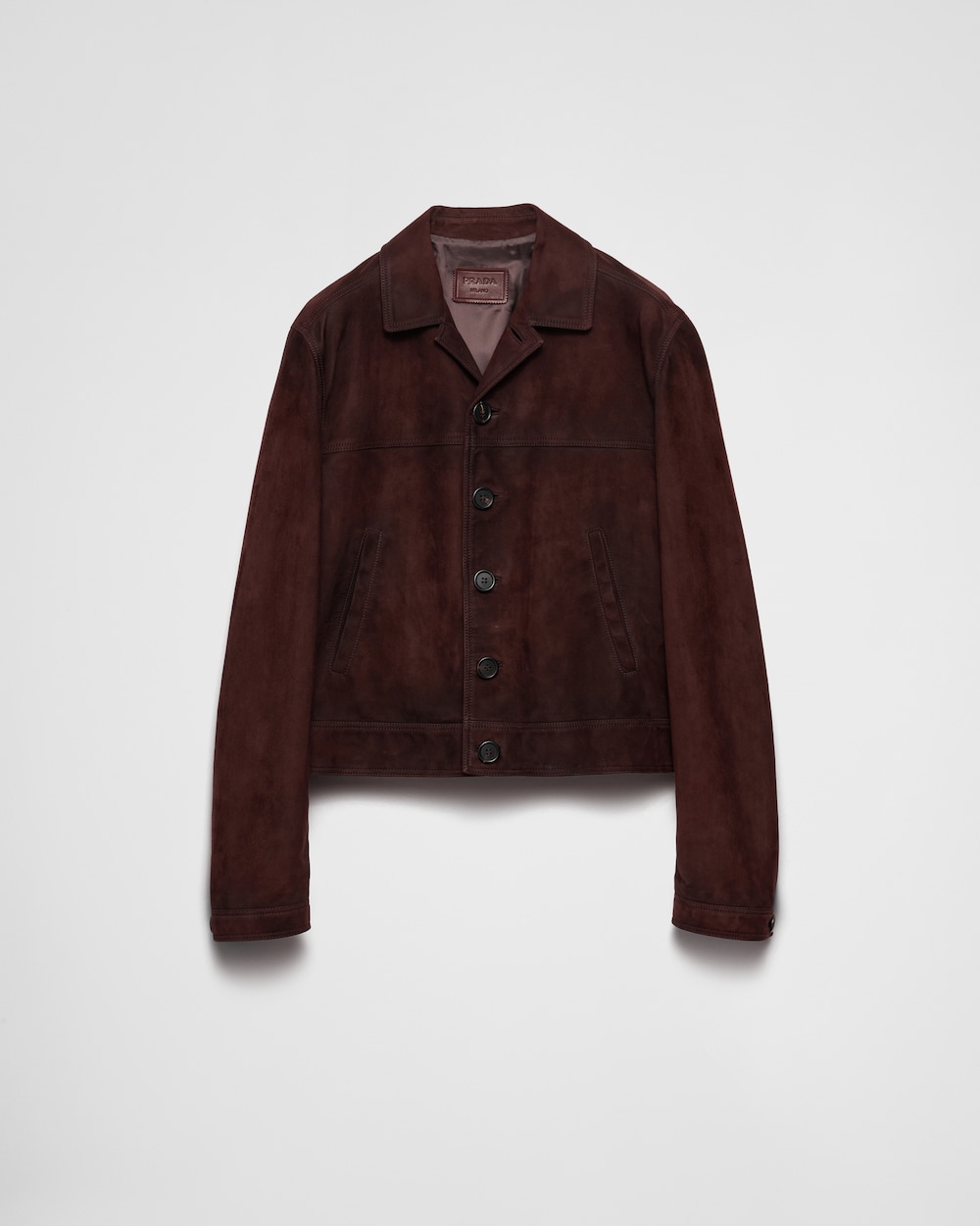 ミニマルなデザインのブルゾンジャケット。スエード特有の仕上げにより、直線的なシルエットに柔らかさを出しています。レトロな雰囲気を現代的なスタイルで再解釈し、トライアングルロゴをあしらいました。