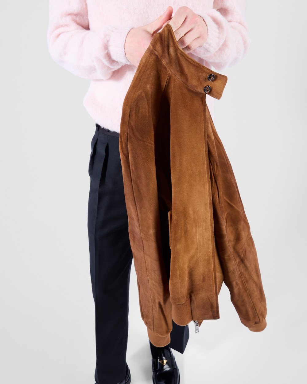 ヴィンテージ感のあるひねりを加えて再解釈した、スエード ボンバージャケット。しなやかなスエードに繊細な加工を施して深みと個性を与えることで、クラシックなシルエットを再定義しています。中央のファスナー開閉式とスタンドカラーが洗練された雰囲気を演出し、ラグランスリーブとニット素材の袖口が快適なフィット感を実現します。