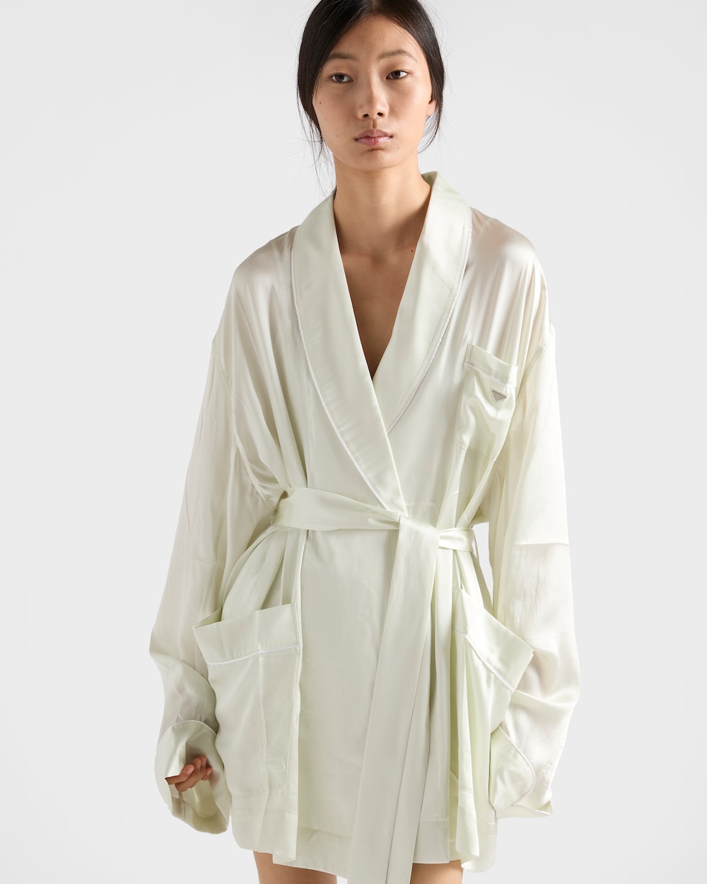 このファインシルク製のローブは、快適さと洗練を兼ね備えた上品な衣服です。