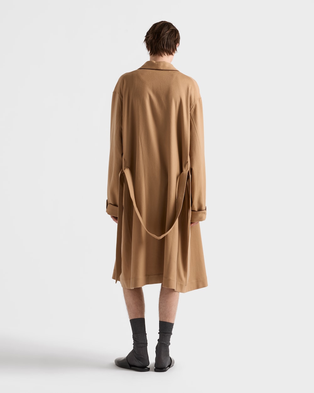 柔らかなカシミヤで作られたこのローブは、快適さと洗練さを兼ね備えたベルト付きのクラシックなシルエットです。暖かく包み込むようなウェアは、トライアングルロゴで仕上げられています。
